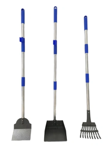 → Kehrblech: 95cm (17×16cm) | Rechen: 92cm (9 Zinken) | Handfeger: 18×13cm