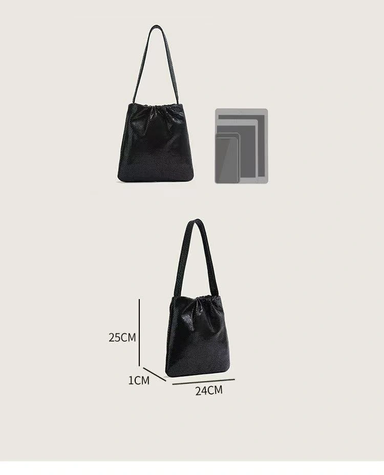24*25*1cm Schaffell Leder Eimer Tasche | Glänzende Gerüchte & Top - Griff Design, Metallic Look für Alltag/Party/Einkauf, Mehrere Farben & Texturen