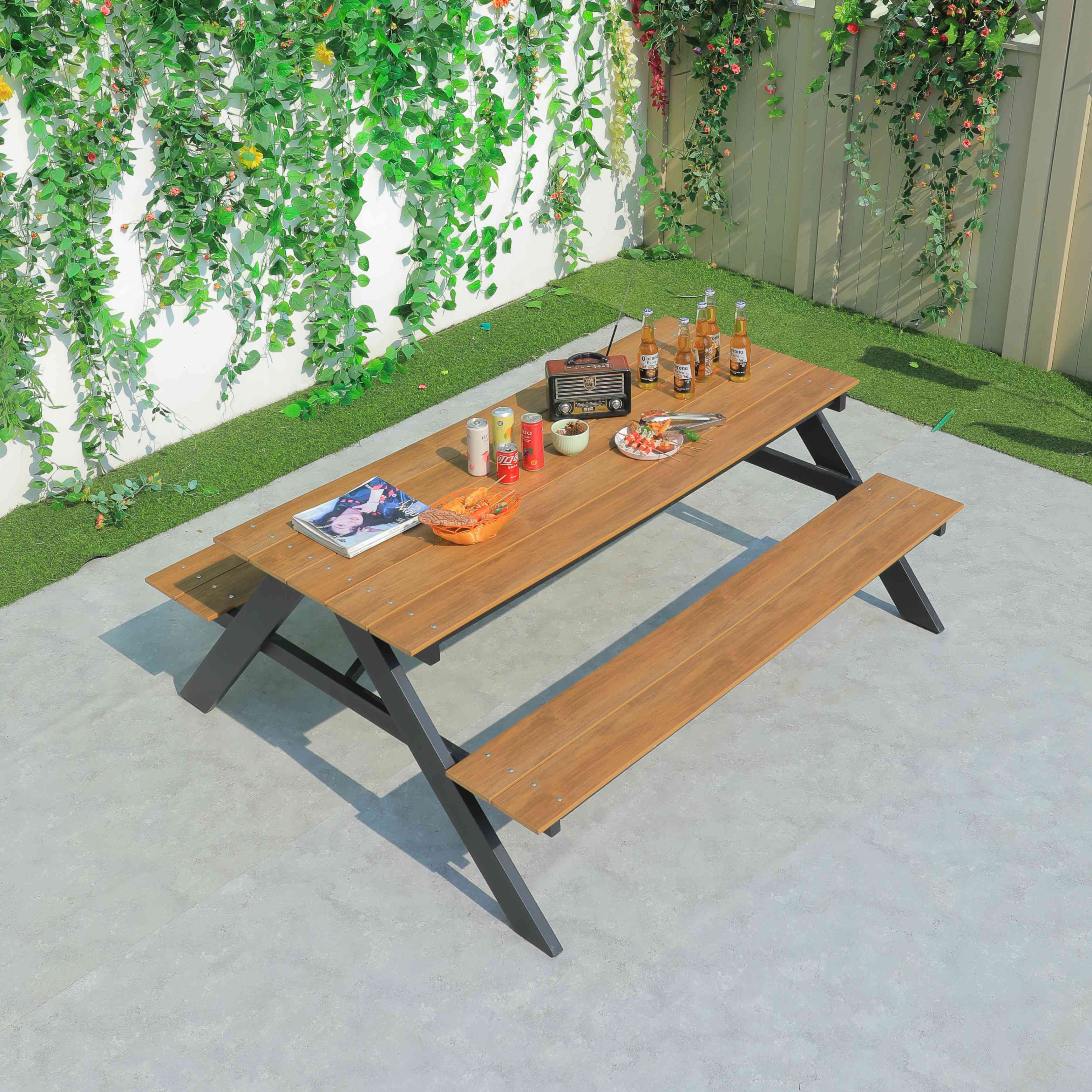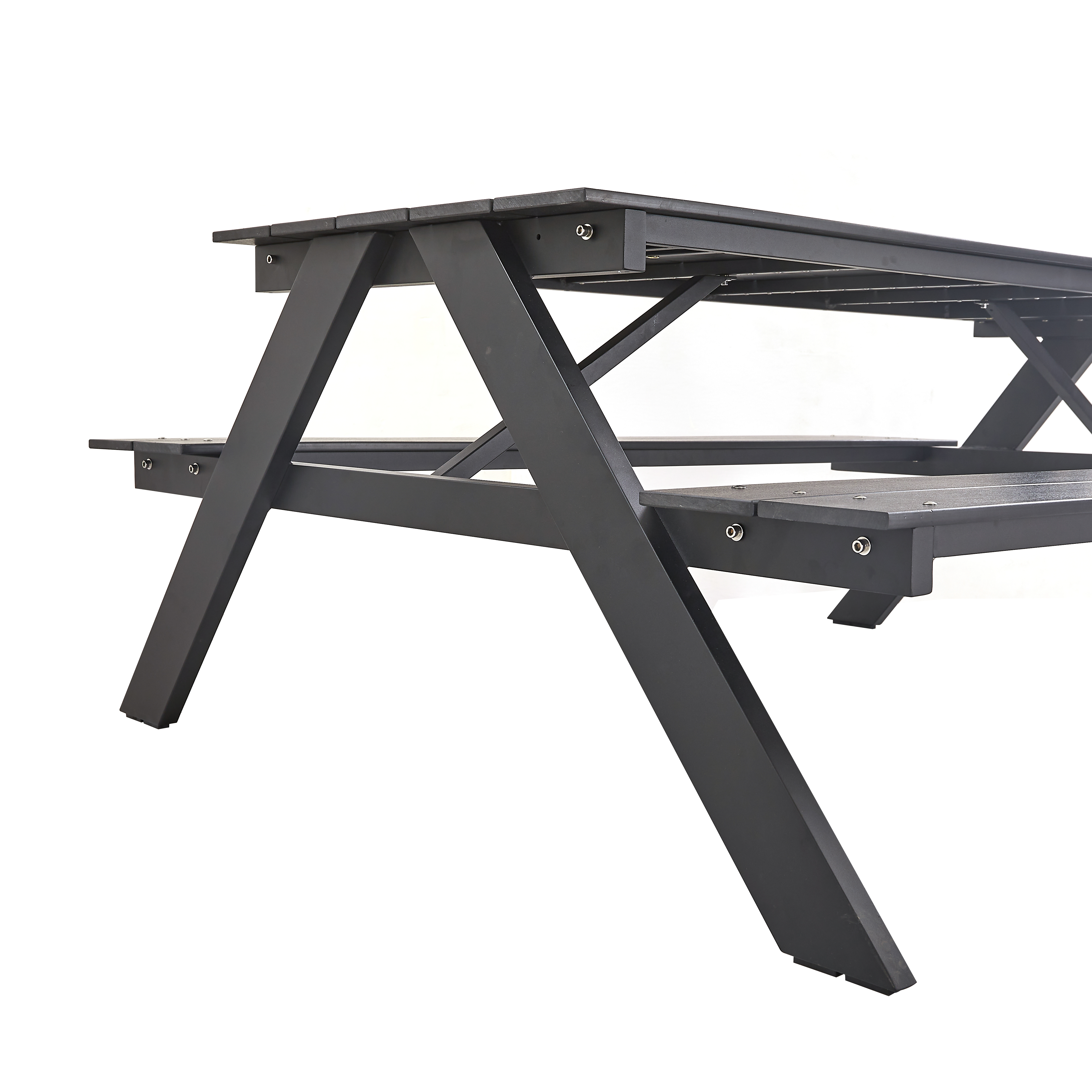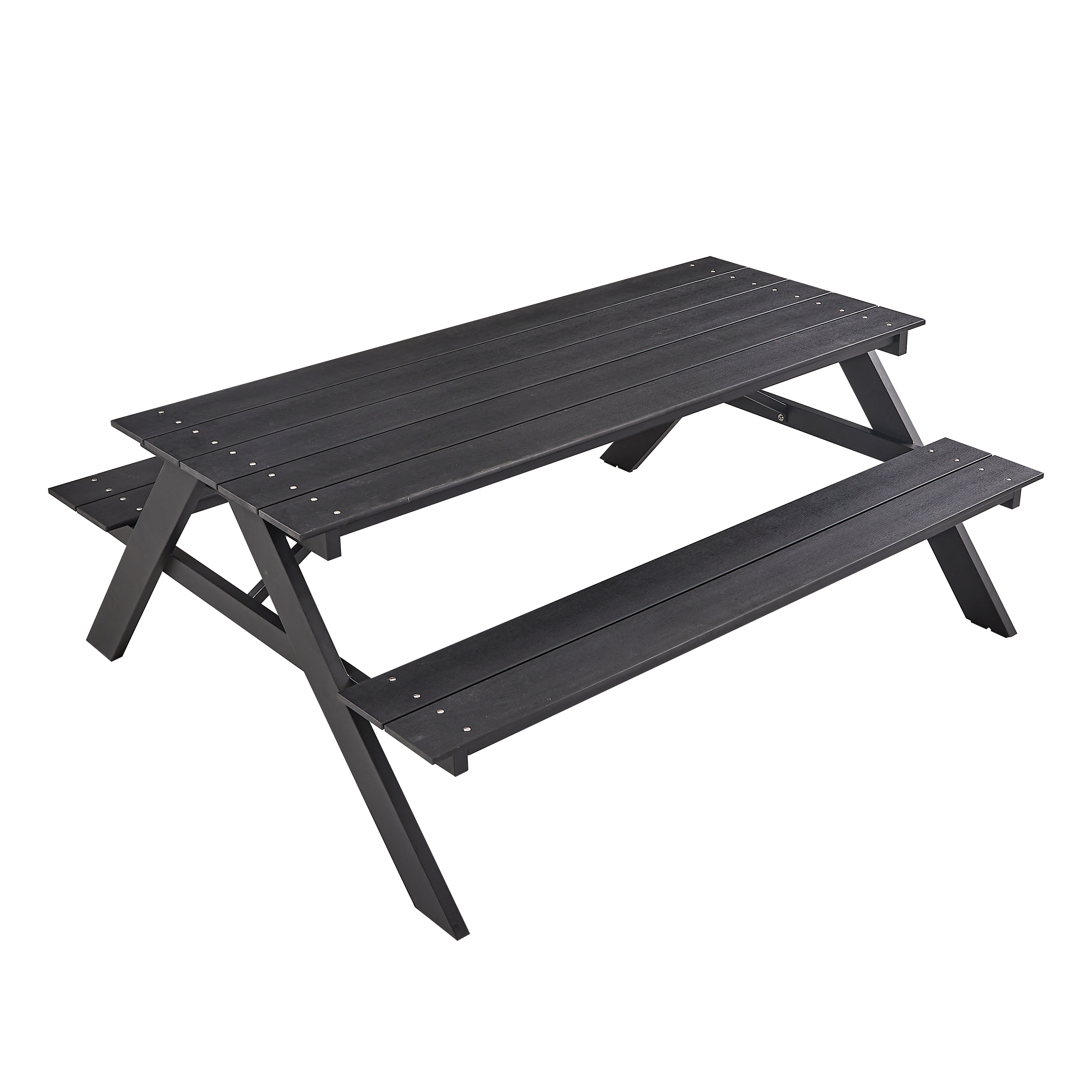 【Muster-Vorbestellung】Quadratischer Gartentisch mit Sitzbank Set 165x149cm | Terrassenmöbel aus pflegeleichtem Kunstholz | Wetterfest | Wahlweise Braun/Schwarz oder Vollschwarz