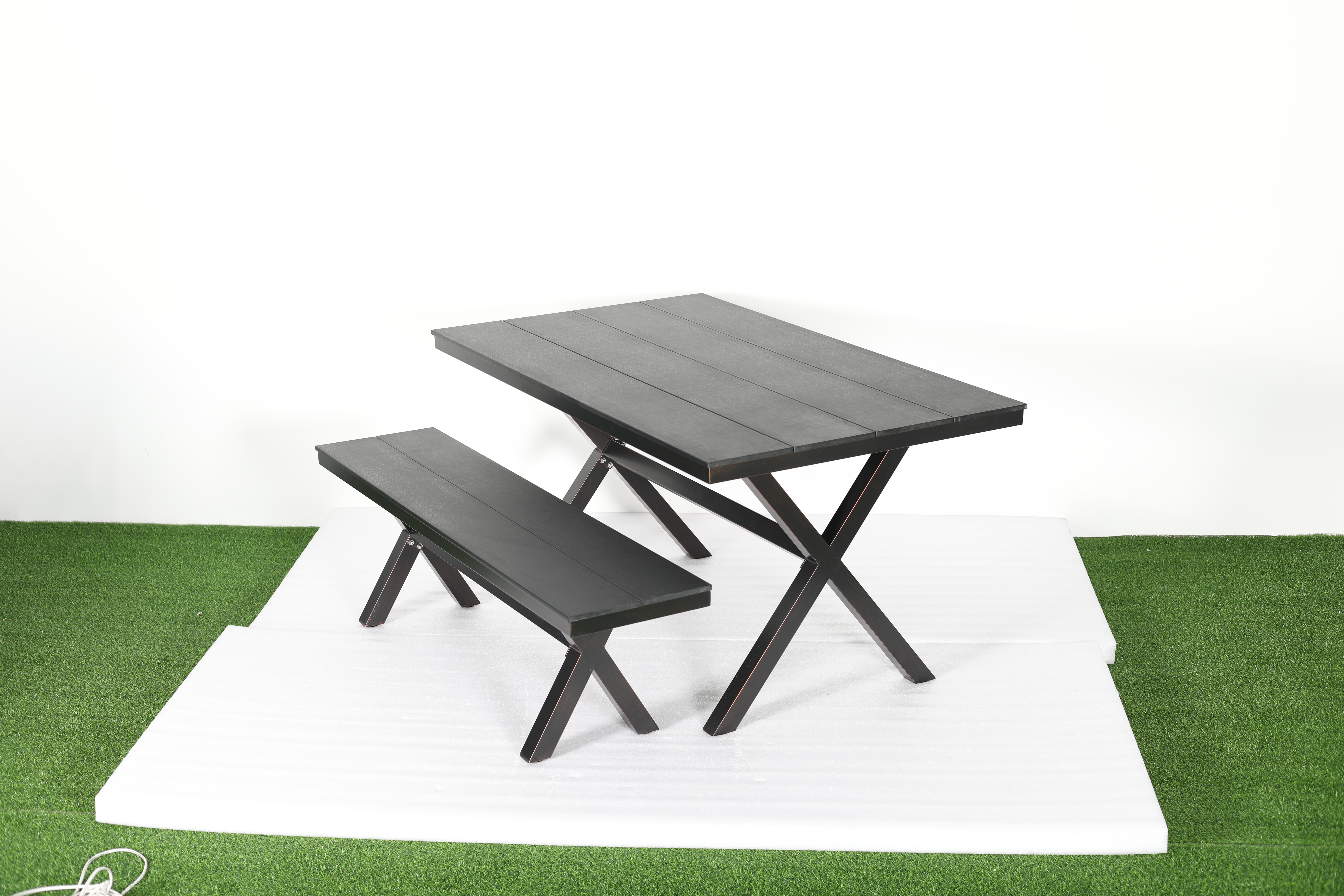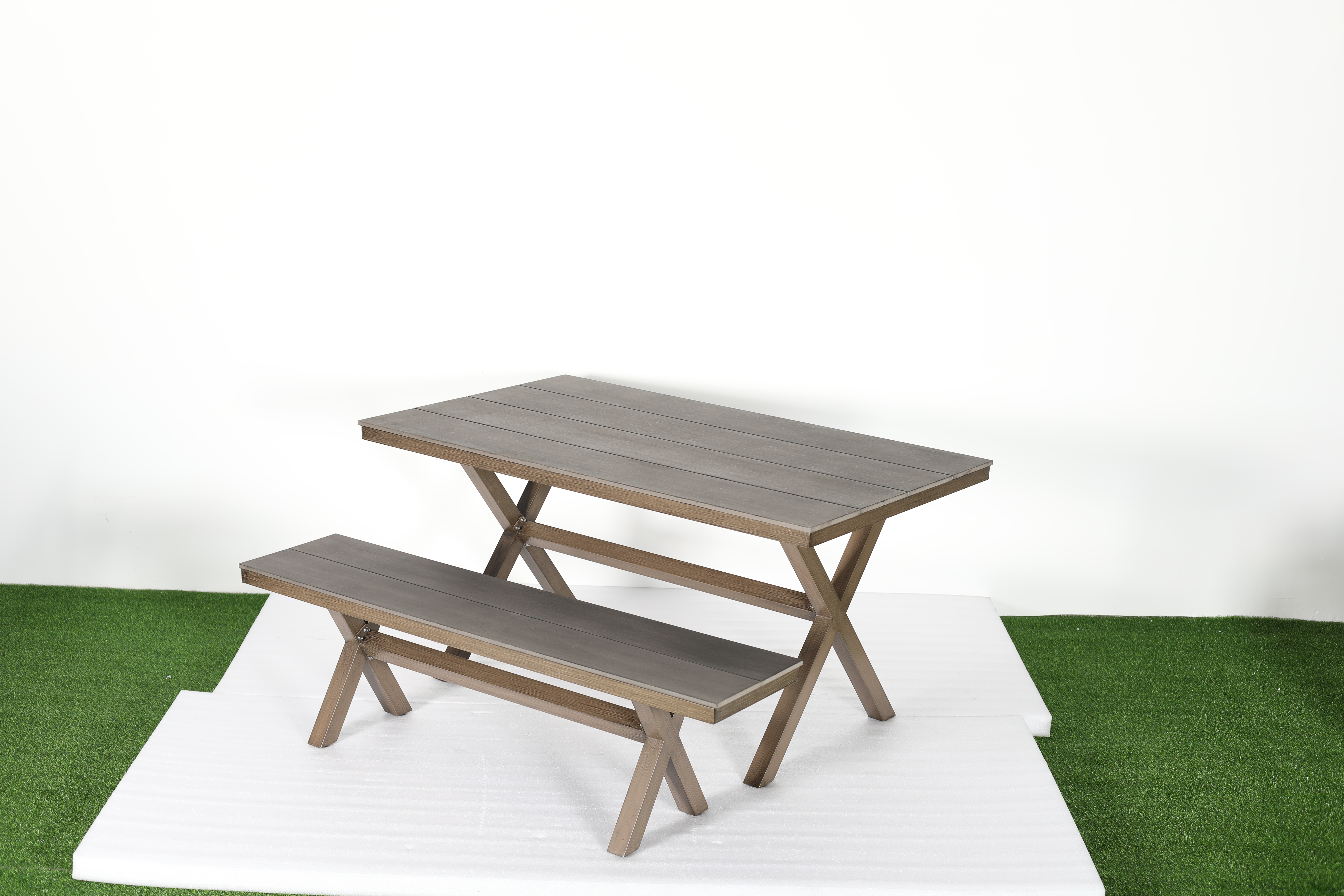【Muster-Vorbestellung】Gartenbank aus Kunstholz 150x36x47cm | Sitzfläche in Naturholzoptik + hellgraues Gestell | 10,5kg leicht | wetterfest & pflegeleicht | Für Terrasse und Balkon | Passt zur Serie