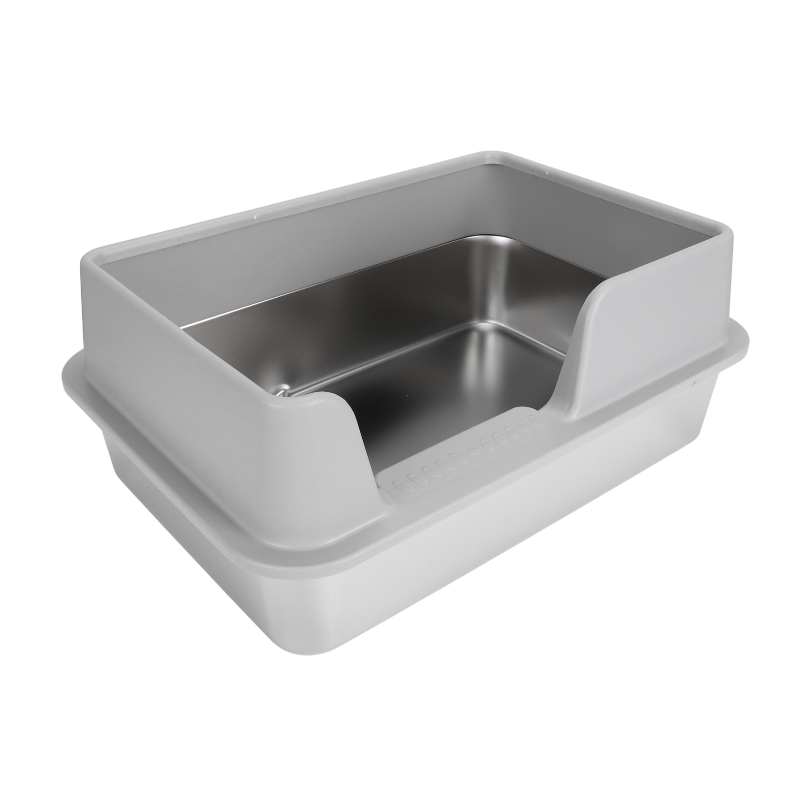 Katzenklo aus Edelstahl mit Seiteneingang, Hohe Wände verhindern Streu - Robuster, Geruchsneutraler & Leicht zu Reinigen Katzentoilette - Kleine Größe für Kitten, Kleine Katzen (Grau)