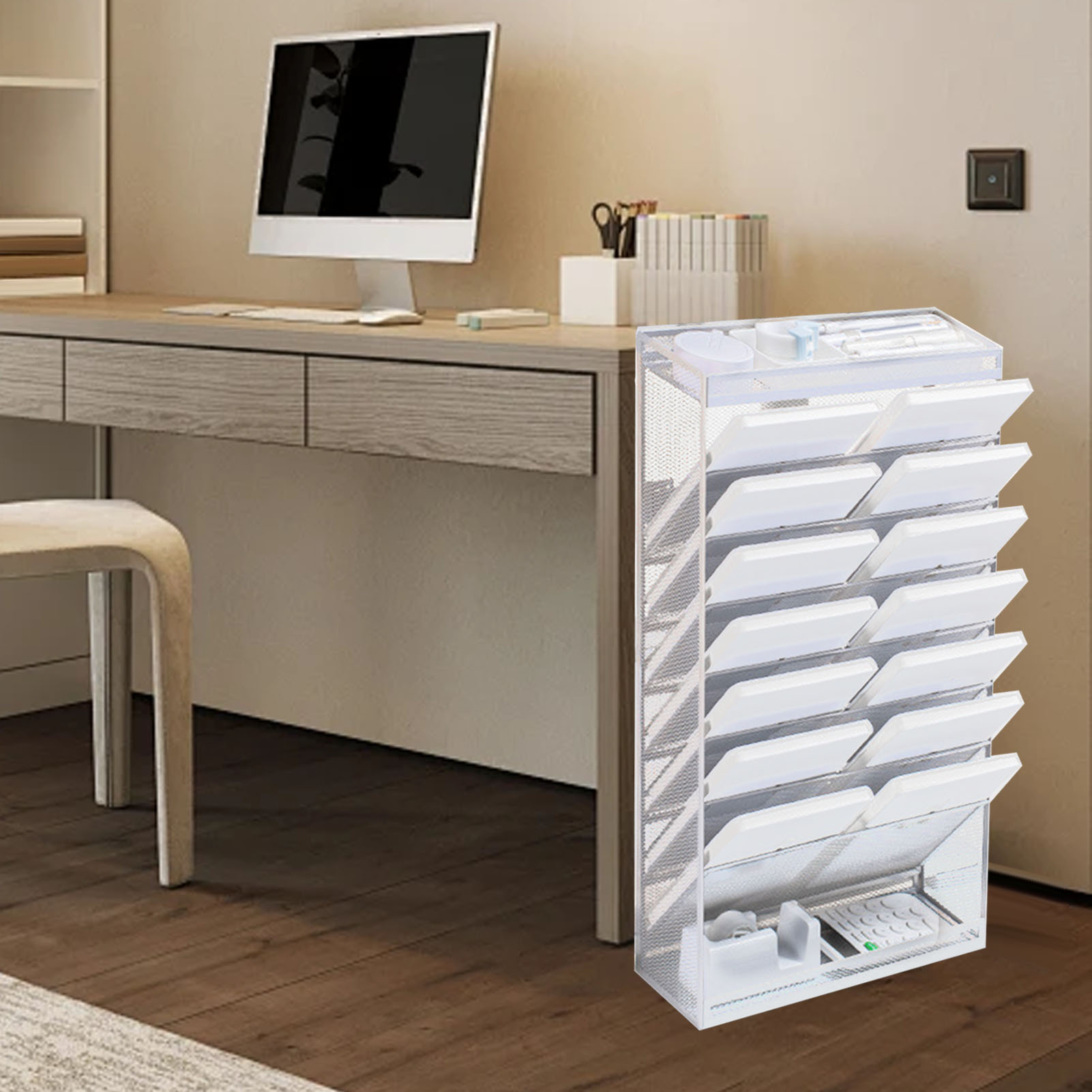 9-Fach Rollen Regal Mit Wandmontage, Stabiler Stahl Gitter Ablagekorb Mobil & Wandhängend, Platzsparendes Bücherregal Für Büro Homeoffice, Inkl. Rollen & Zubehör