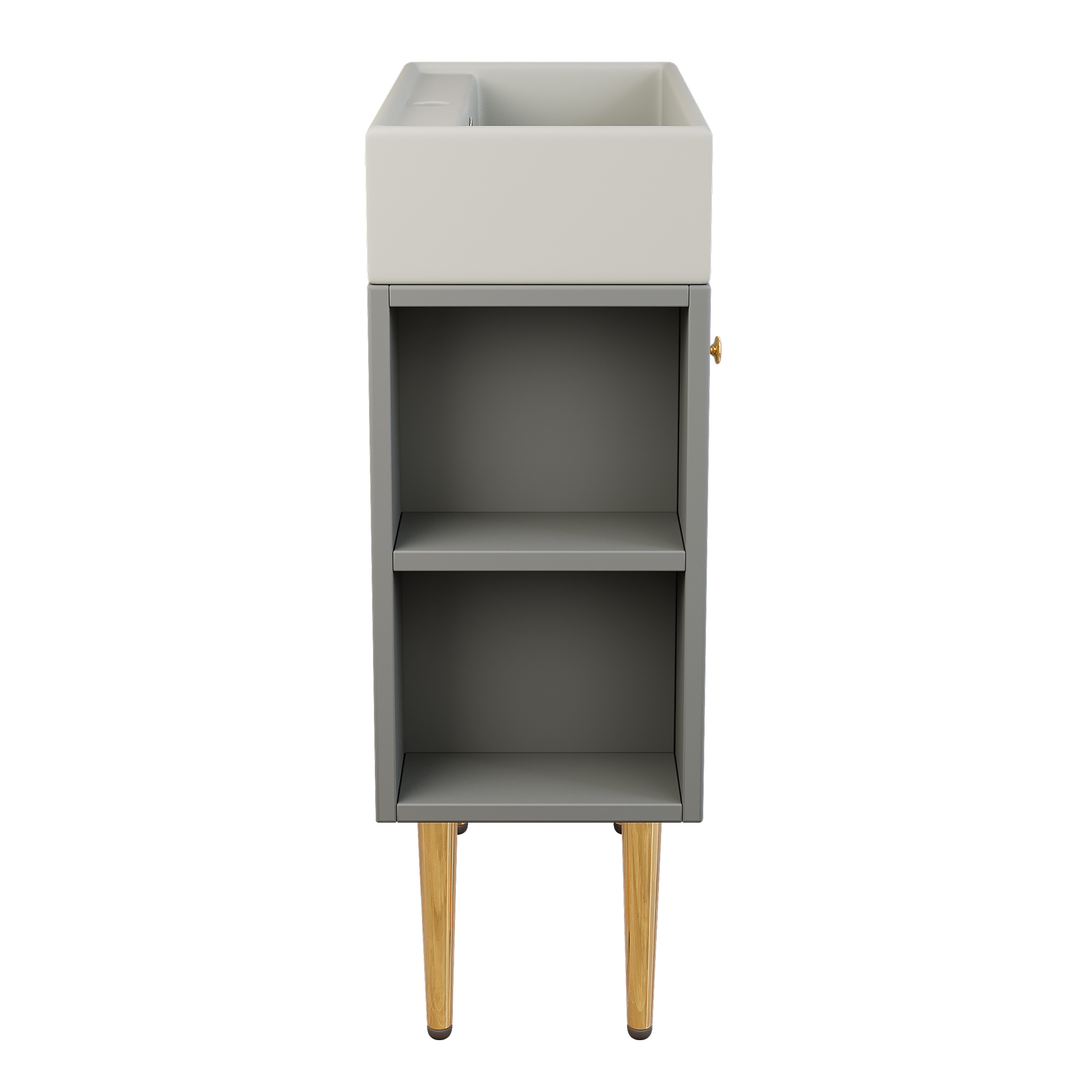 55 cm Kompakter Badezimmerschrank mit Keramikwaschbecken, Hellgrau MDF, Stauraum mit Seitenfächern, Wasserdicht & Einfache Reinigung, Einfache Montage für Gästebad und Kleine Bäder