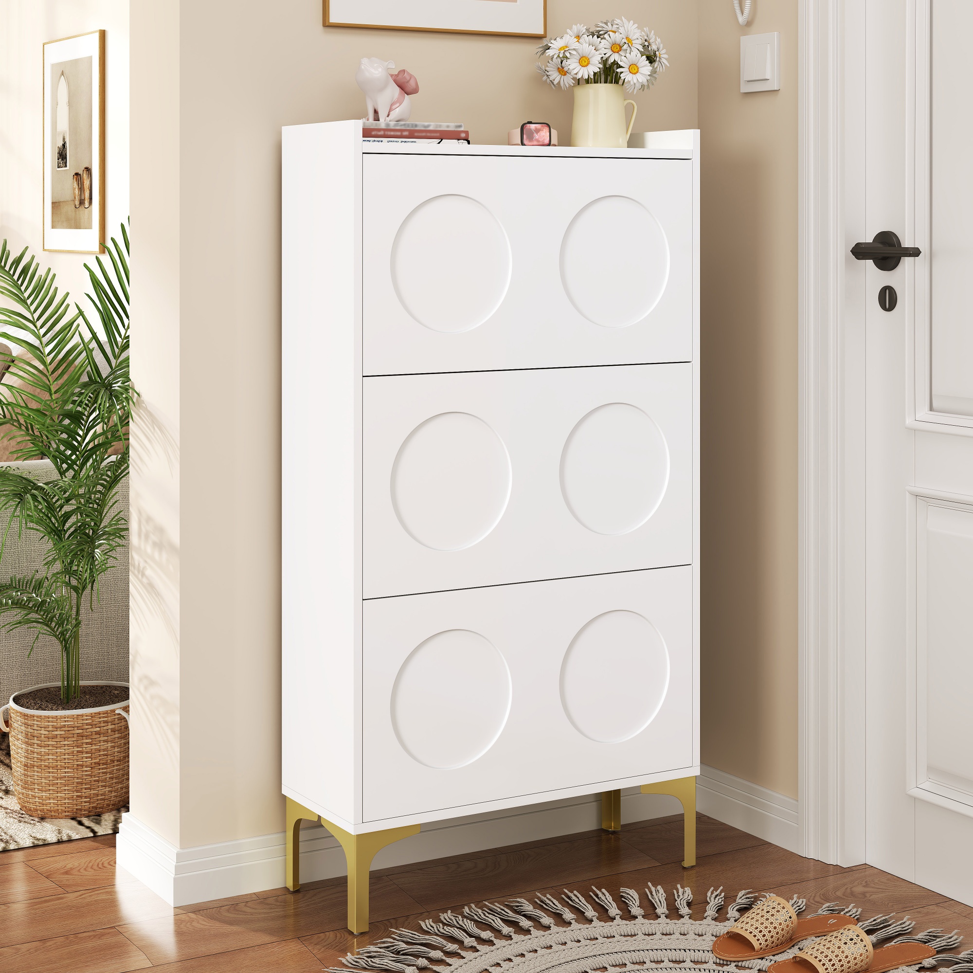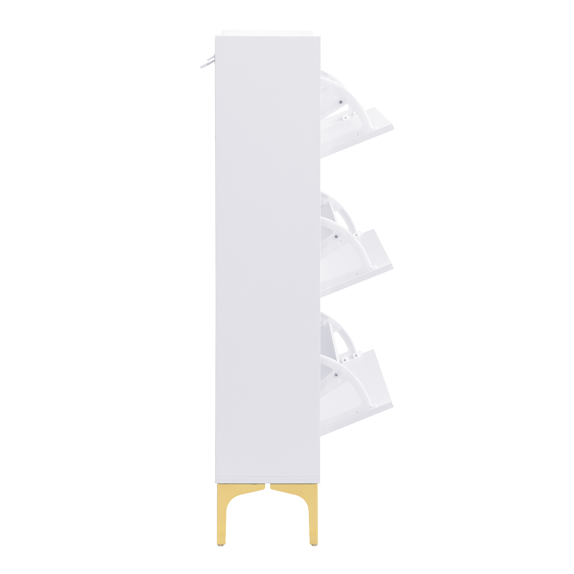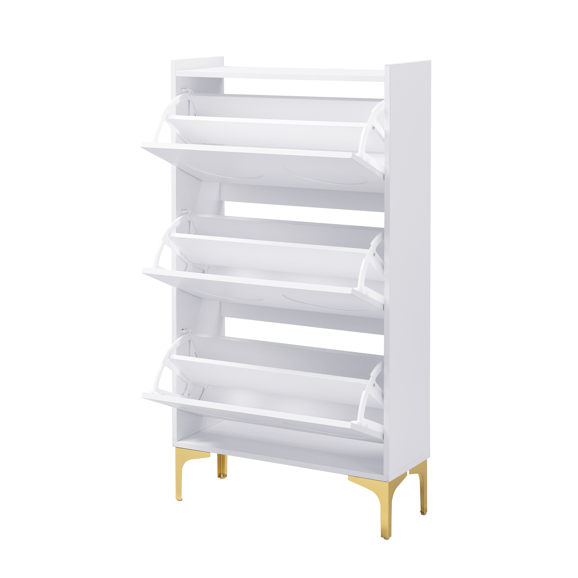 Schuhschrank Weiß, 3-stöckig & staubdicht - Moderner Garderobenschrank mit goldfarbenen Metallfüßen, platzsparend für Flur & Eingangsbereich