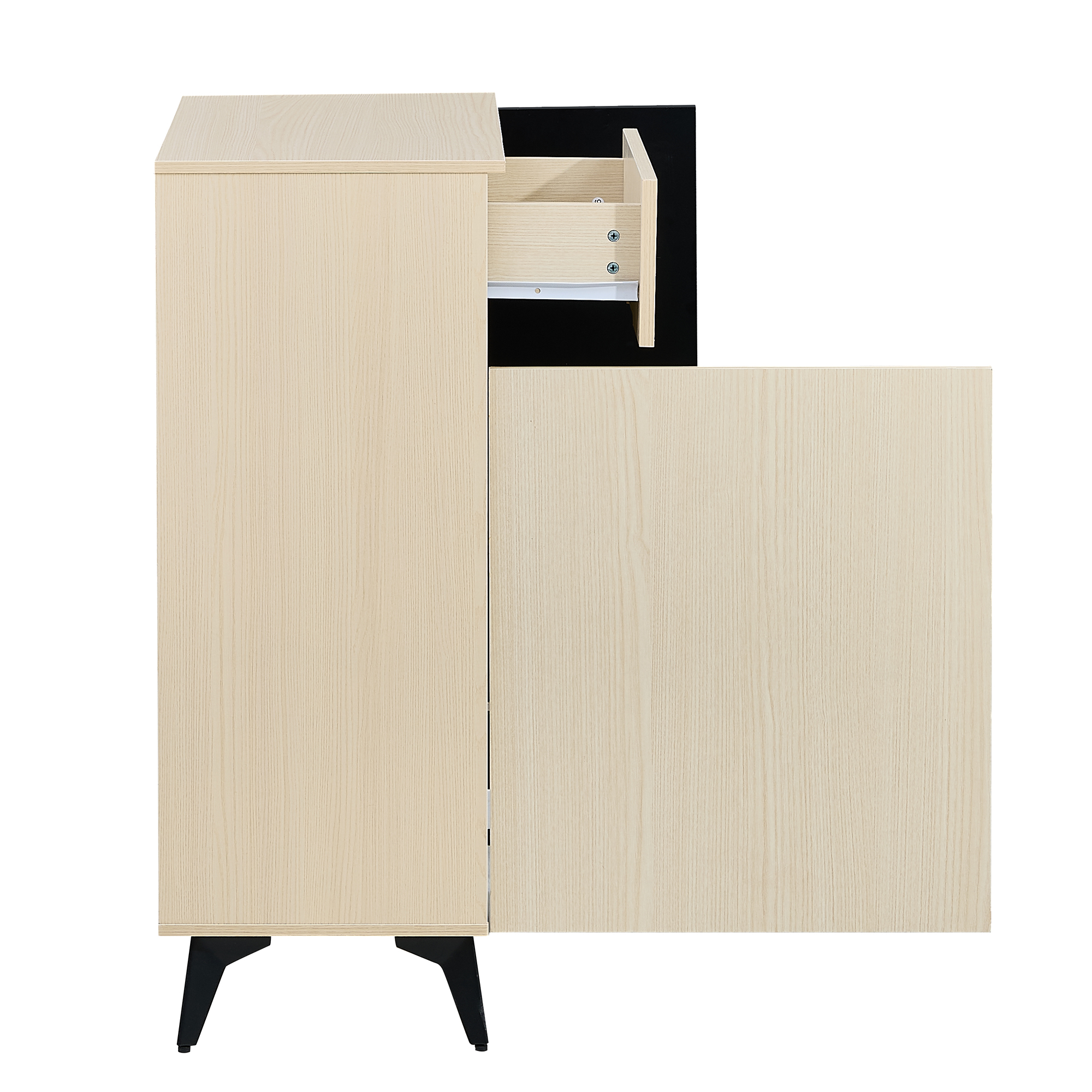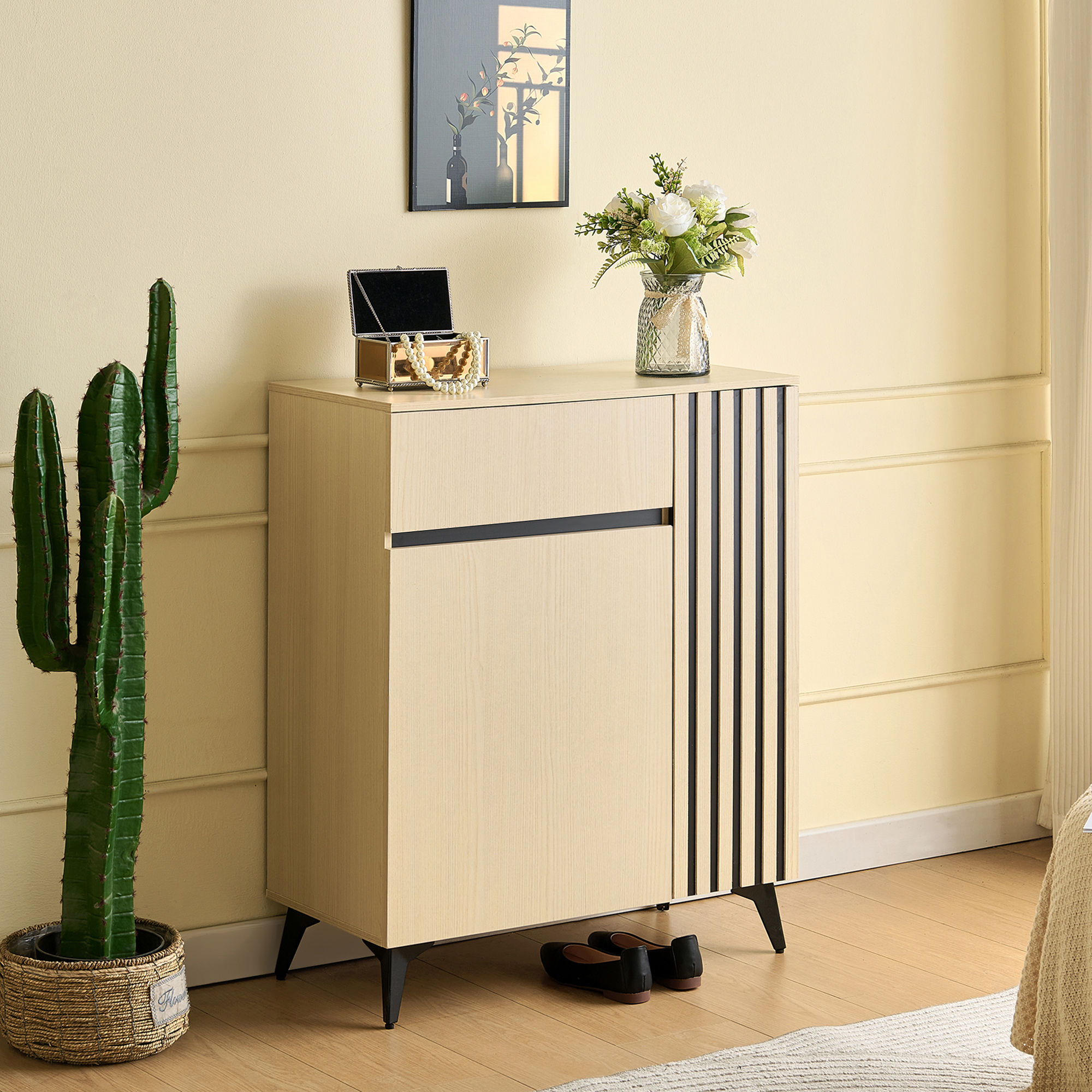 Schuhschrank mit 2 Türen & 1 Schublade, Sideboard in heller Holzoptik - Vielseitiger Stauraum mit verstellbaren Böden für Flur, Wohnzimmer