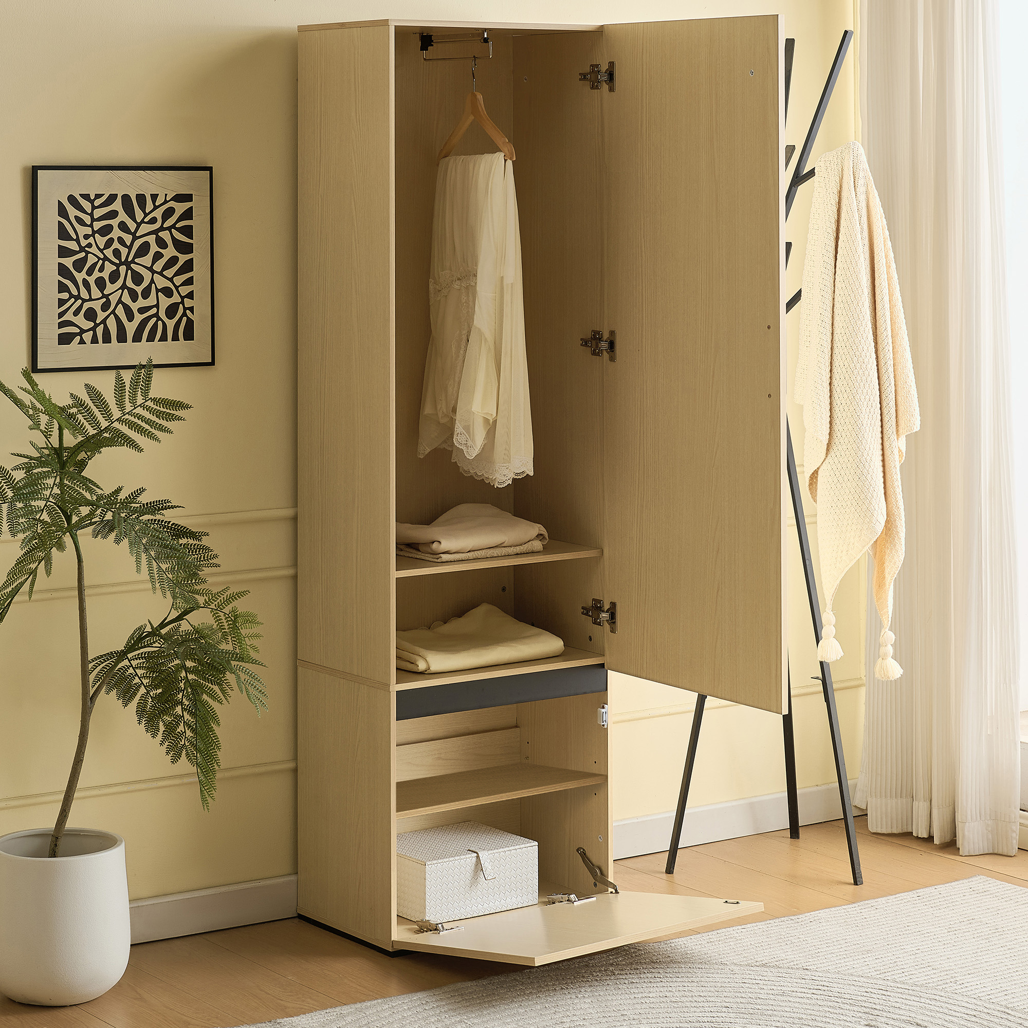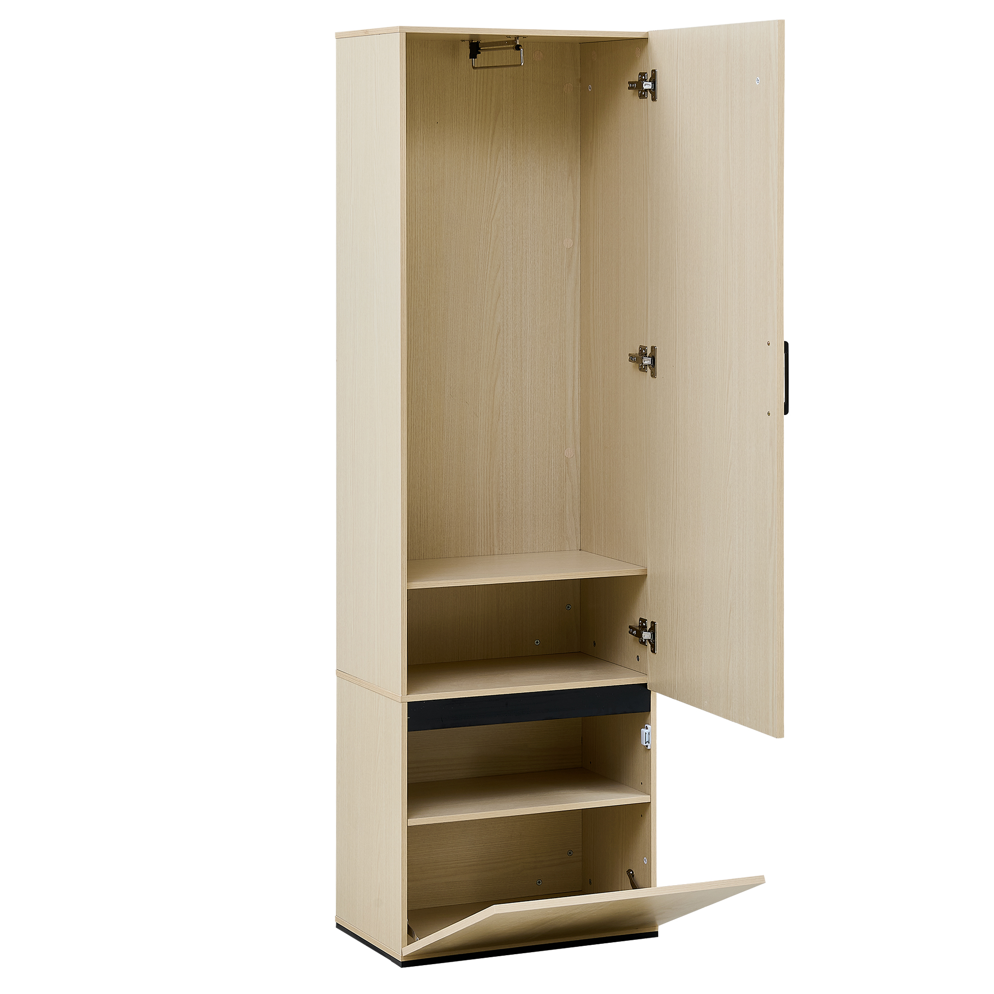 Schmaler Garderobenschrank mit Spiegel & ausziehbarer Kleiderstange - 179cm Hochschrank für Flur, Platzsparend aus MDF in Holzoptik
