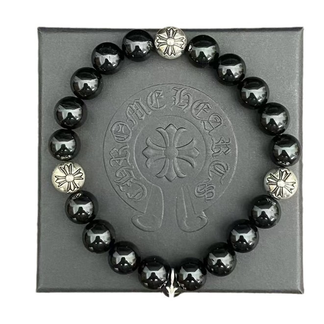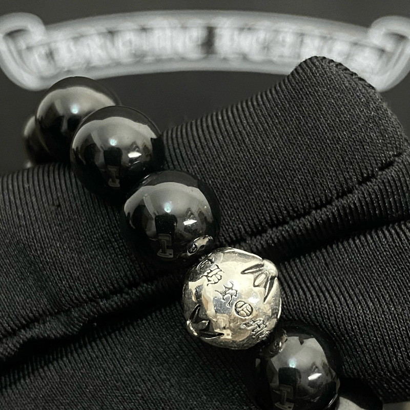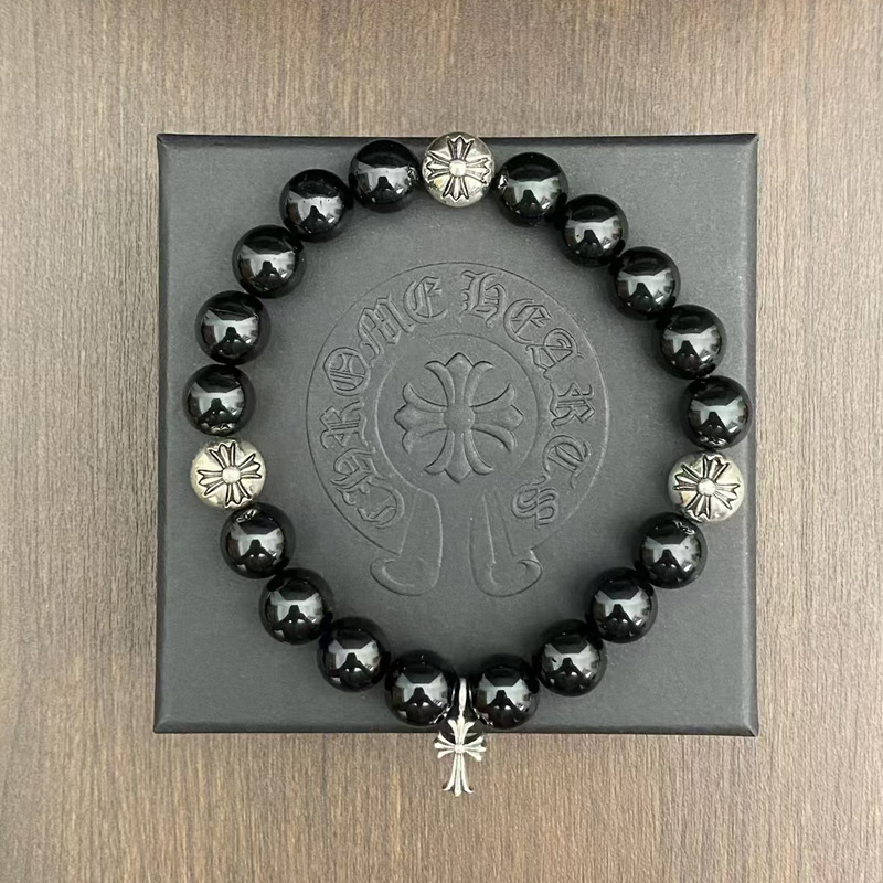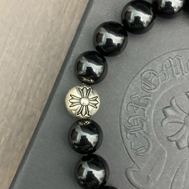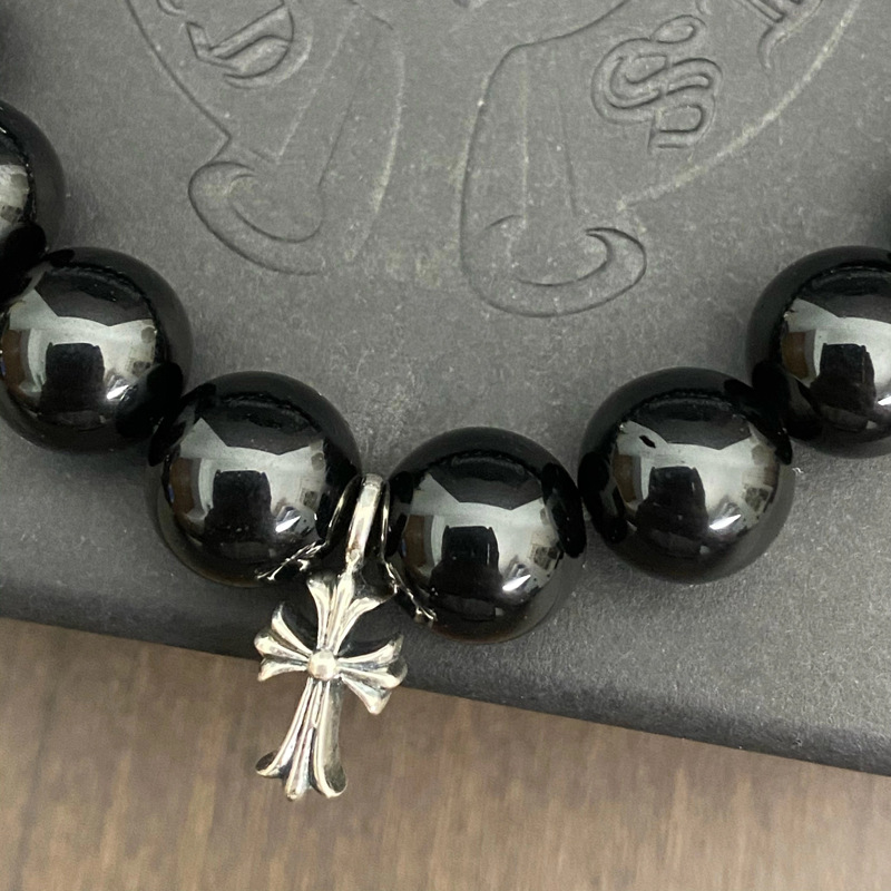 Obsidian Armband mit 4 Silberperlen & Kreuz-Anhänger, 8mm - Unisex Hip-Hop Style, Schicker Trend-Schmuck für Männer und Frauen