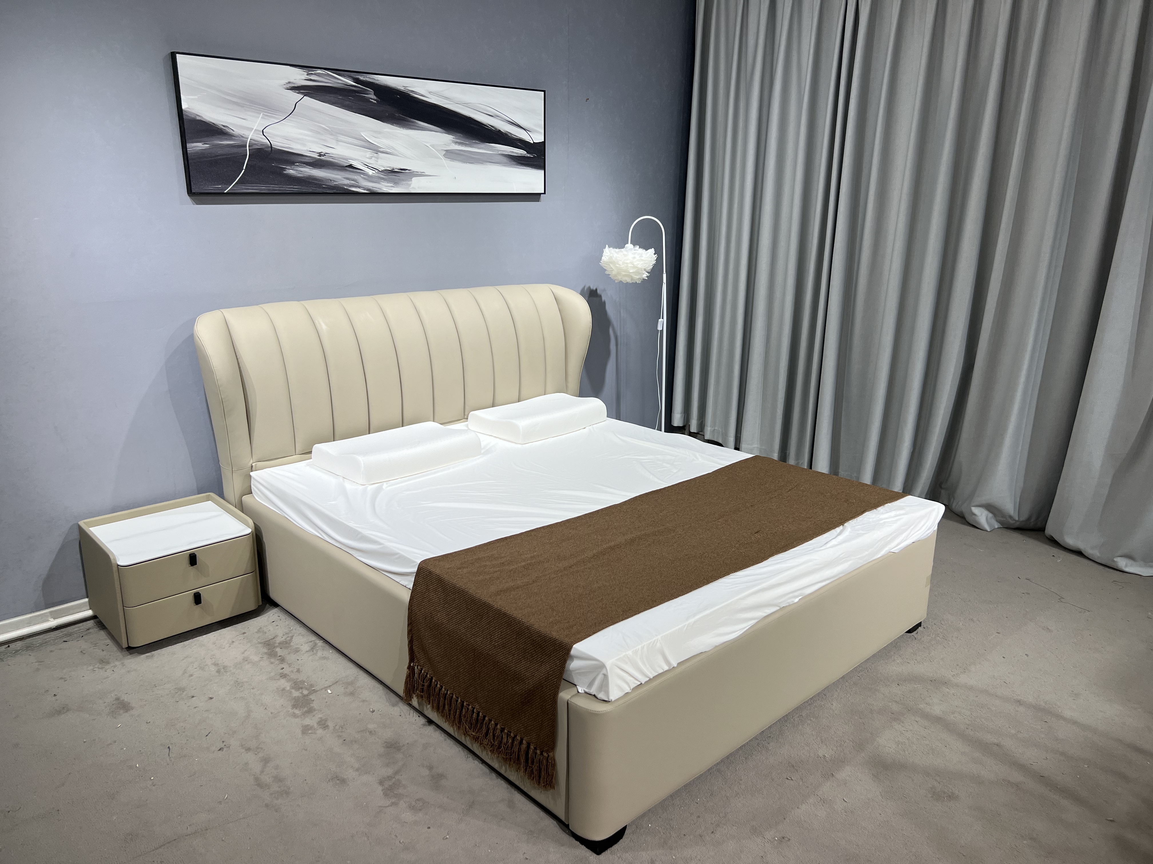 X108 Scratch-Resistant Bed Frame 195×220cm - Cowhide & Synthetic Cover - Wooden Base