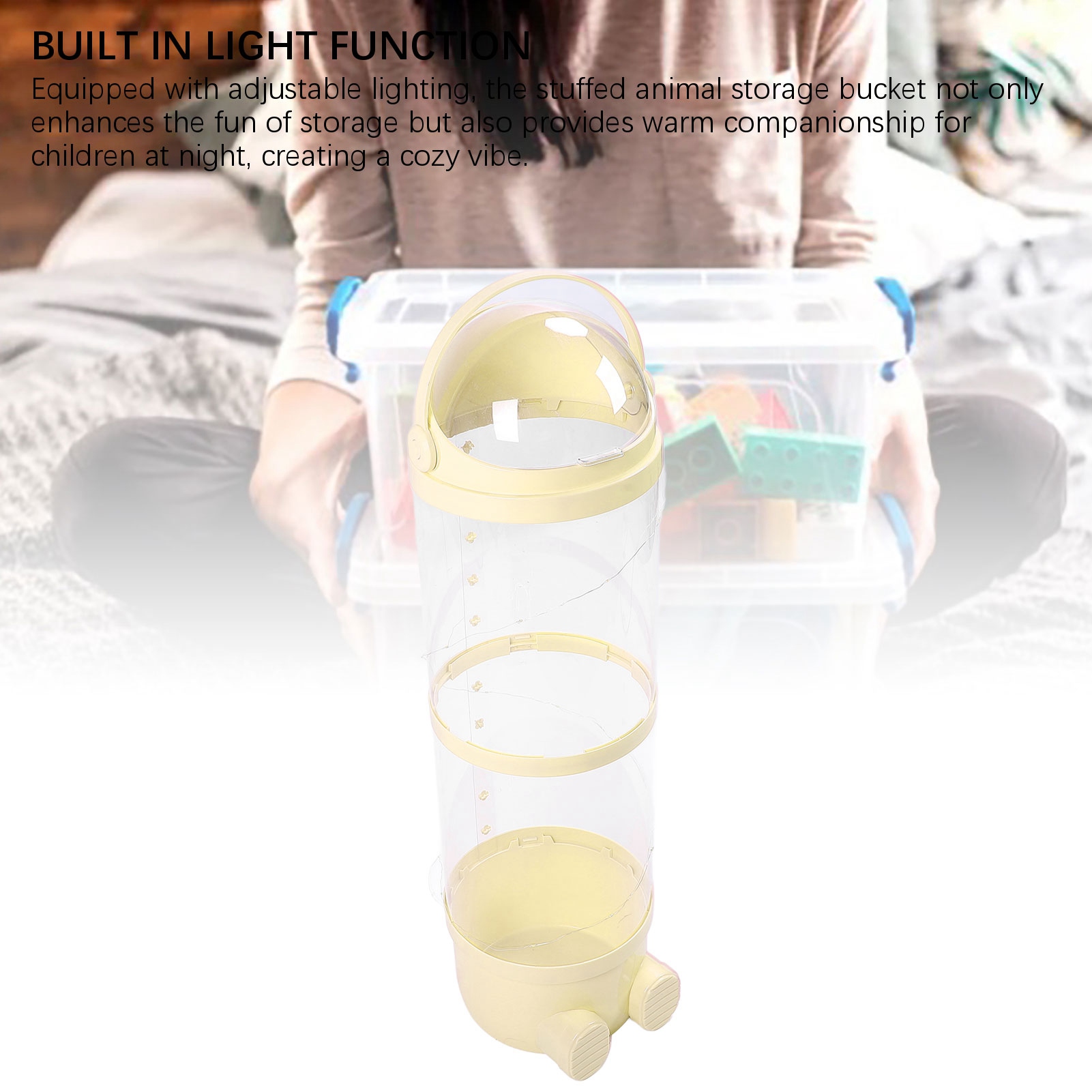LED Light Transparent Toy Storage Organizer, 51"/38" Extra Large Stuffed Animal Bin for Plush Dolls, Kids Room Storage Box (130cm/97cm, Sakura Pink/Apple Green/Cream Yellow)