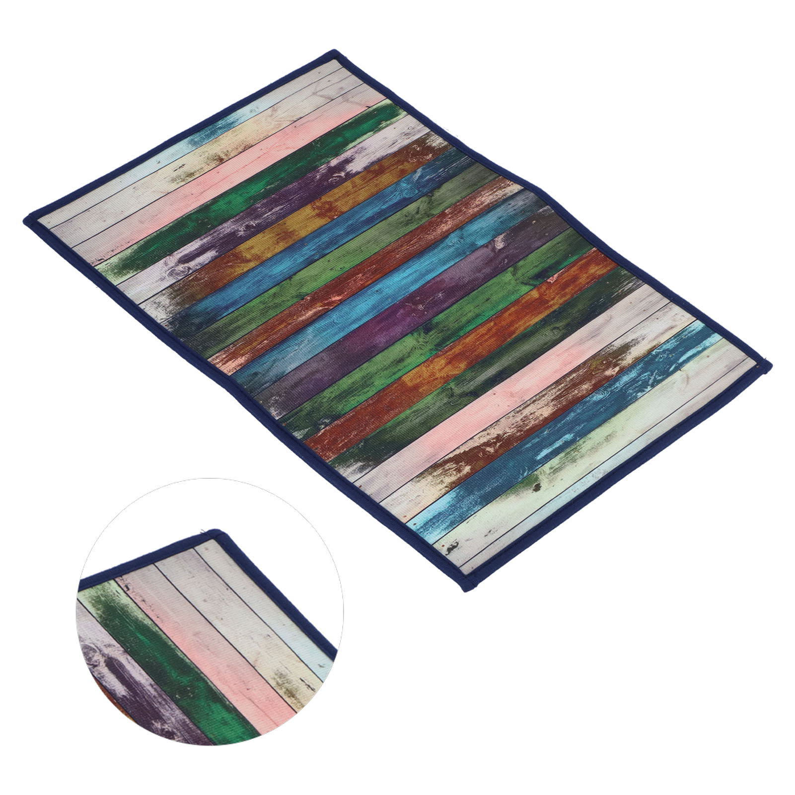 Artistic Colorful Wood Stripe Doormat, Non-Slip Bathroom & Living Room Rug, Random Edge Design, 58.8x39.6cm (24.1"x15.6")