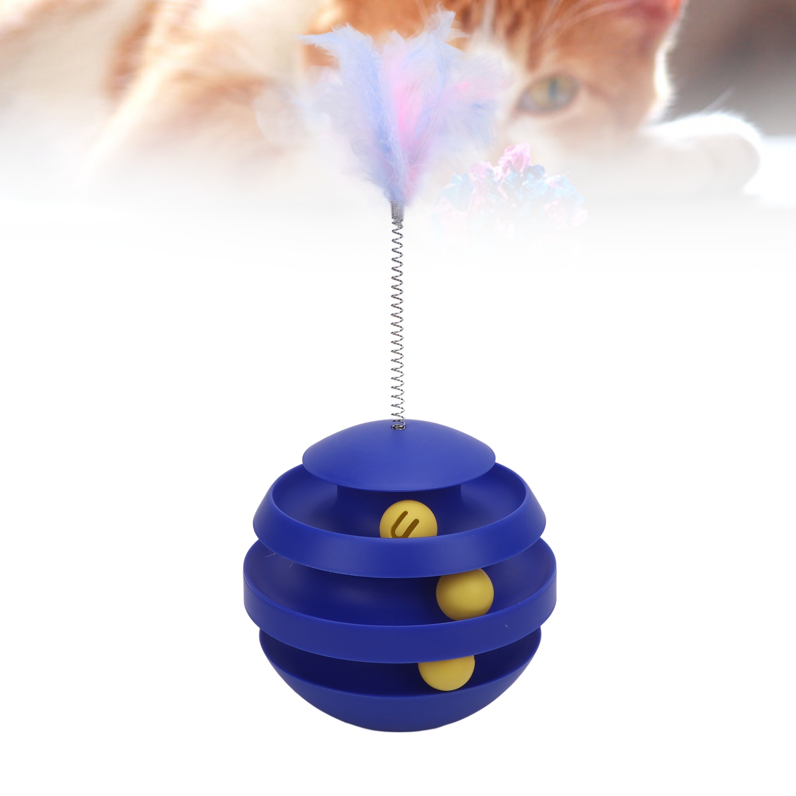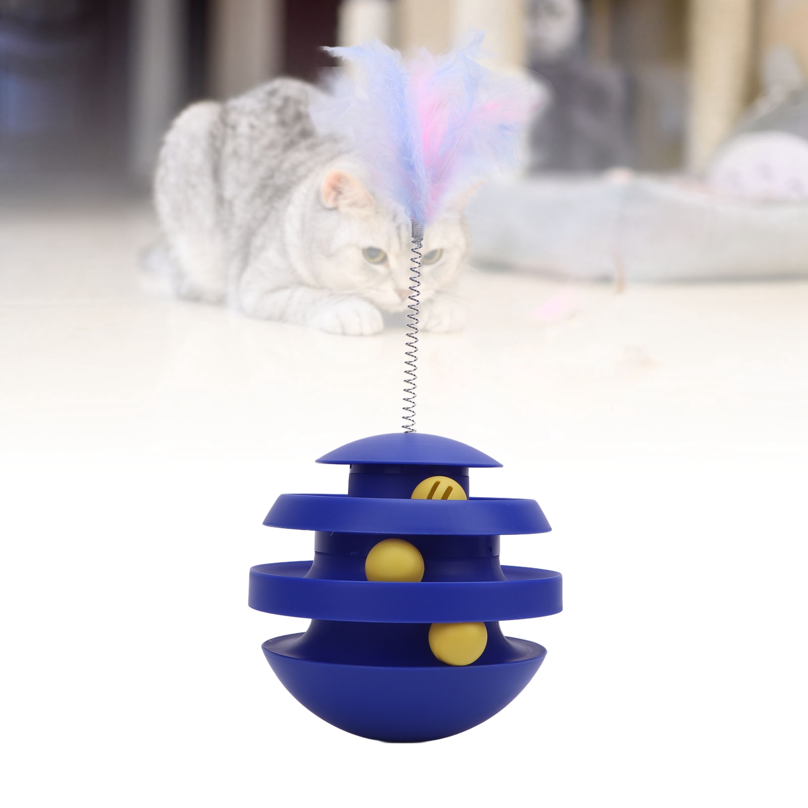 Klein Blue Cat Wobble Toy, Rotating Ball Turntable with Teaser Wand for Indoor Cats, Durable Chew-Resistant Interactive Self-Play Toy to Encourage Exercise & Curiosity