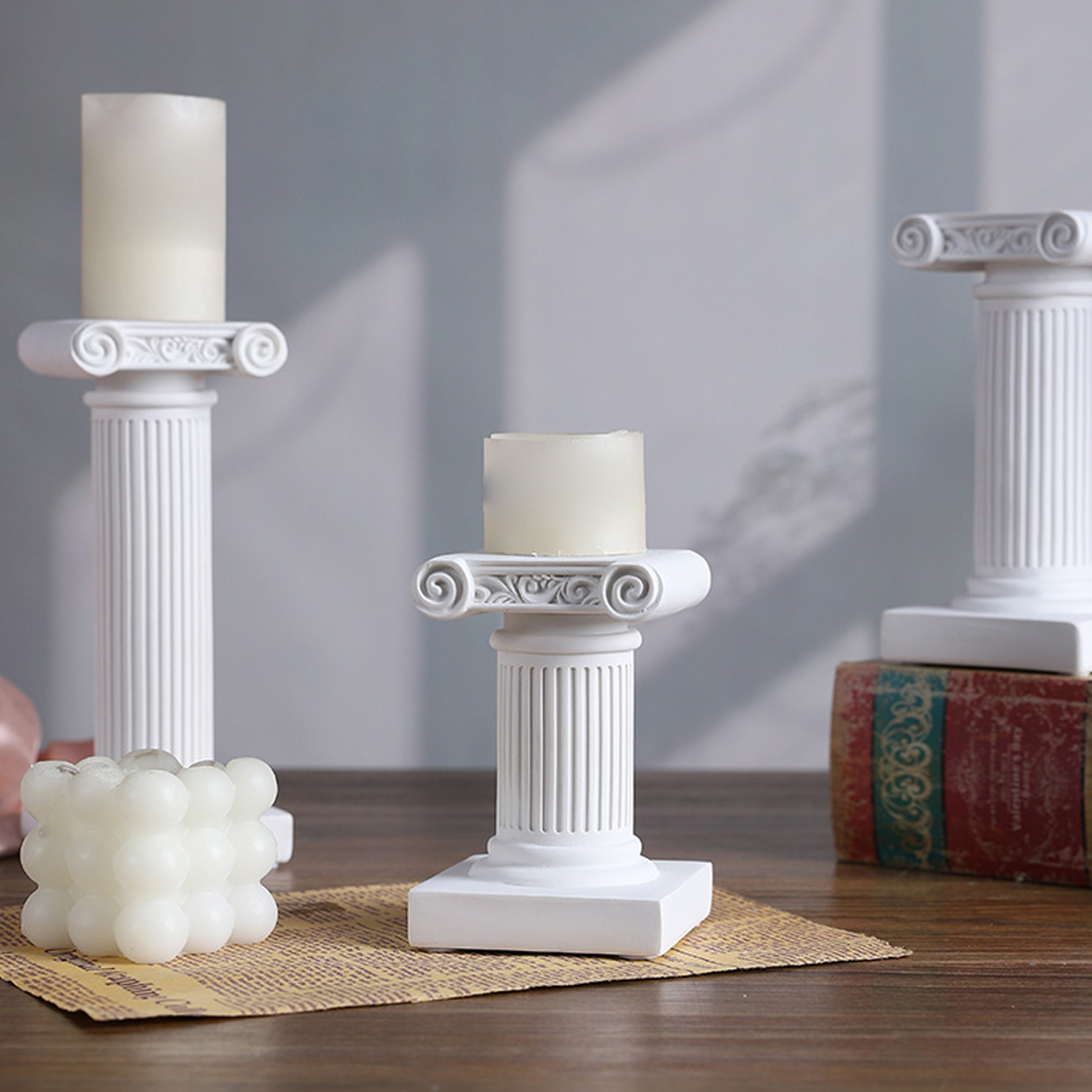 Römische Säulen Deko aus Resin, Weiße Verzierte Säule mit Engel-Relief für Hochzeit Fotohintergrund, Wohnzimmer Vitrinenschmuck, Garten Deko (ca. 450g)