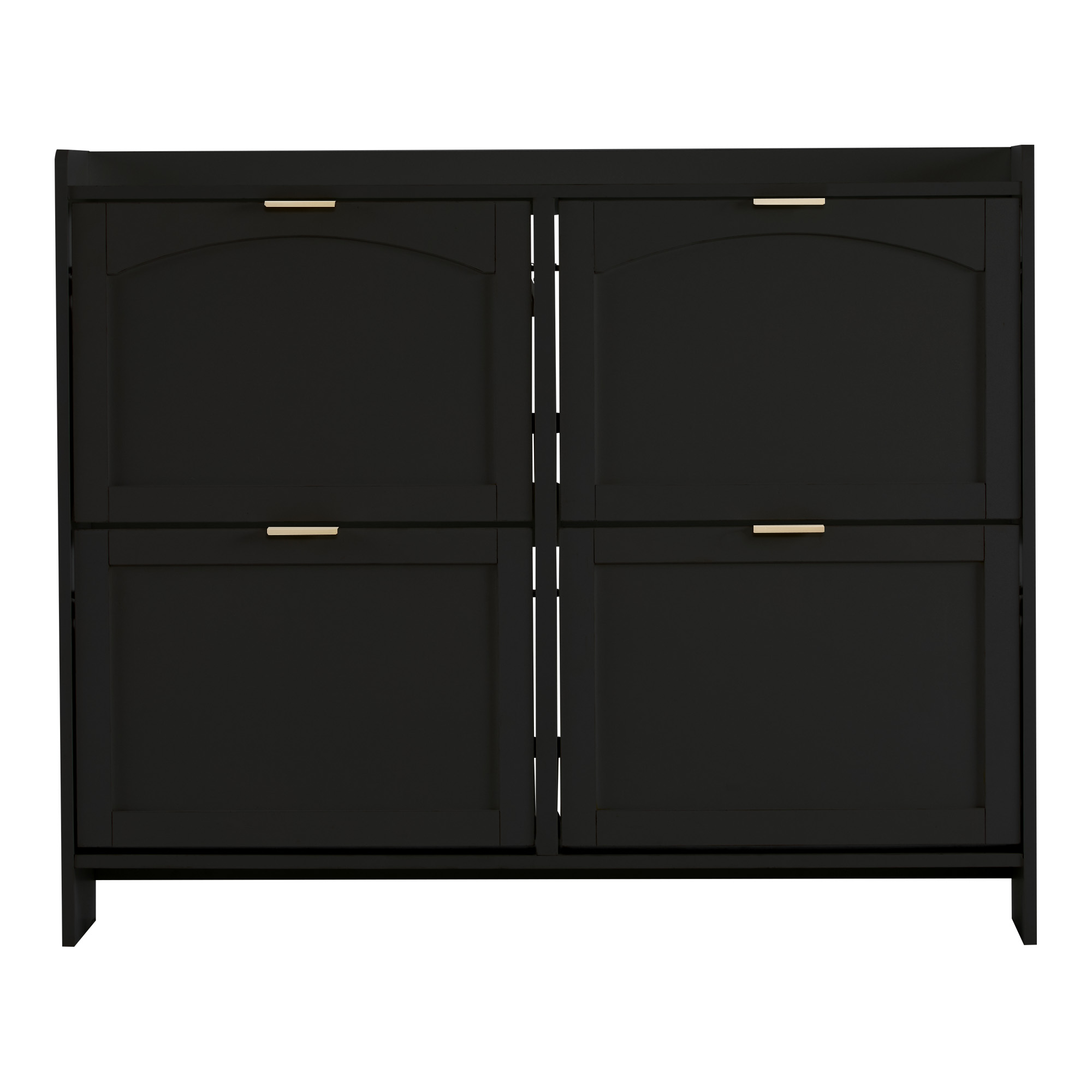 110cm Shoe Storage Cabinet with 4 Doors & Pull-Out Rack, Freestanding Organizer with Open Shelves for Entryway, Black
