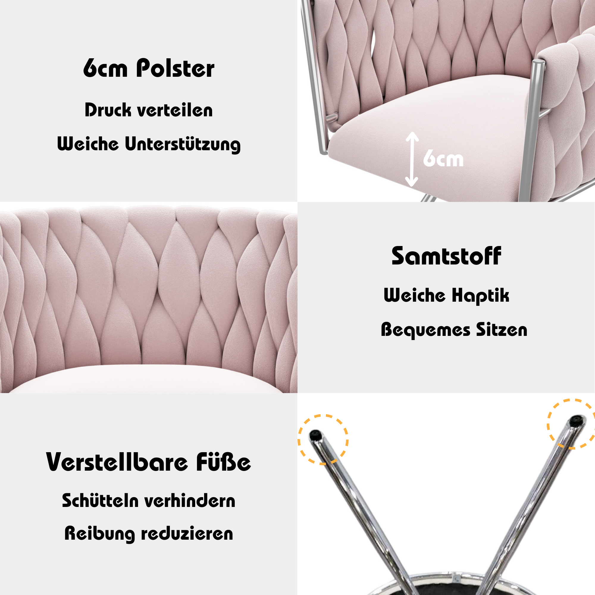 Pink Velvet Vanity Chair with Back - 360 Swivel Makeup Chair for Bedroom, Upholstered Round Stool with Metal Legs, Easy Assembly, 150kg Weight Capacity