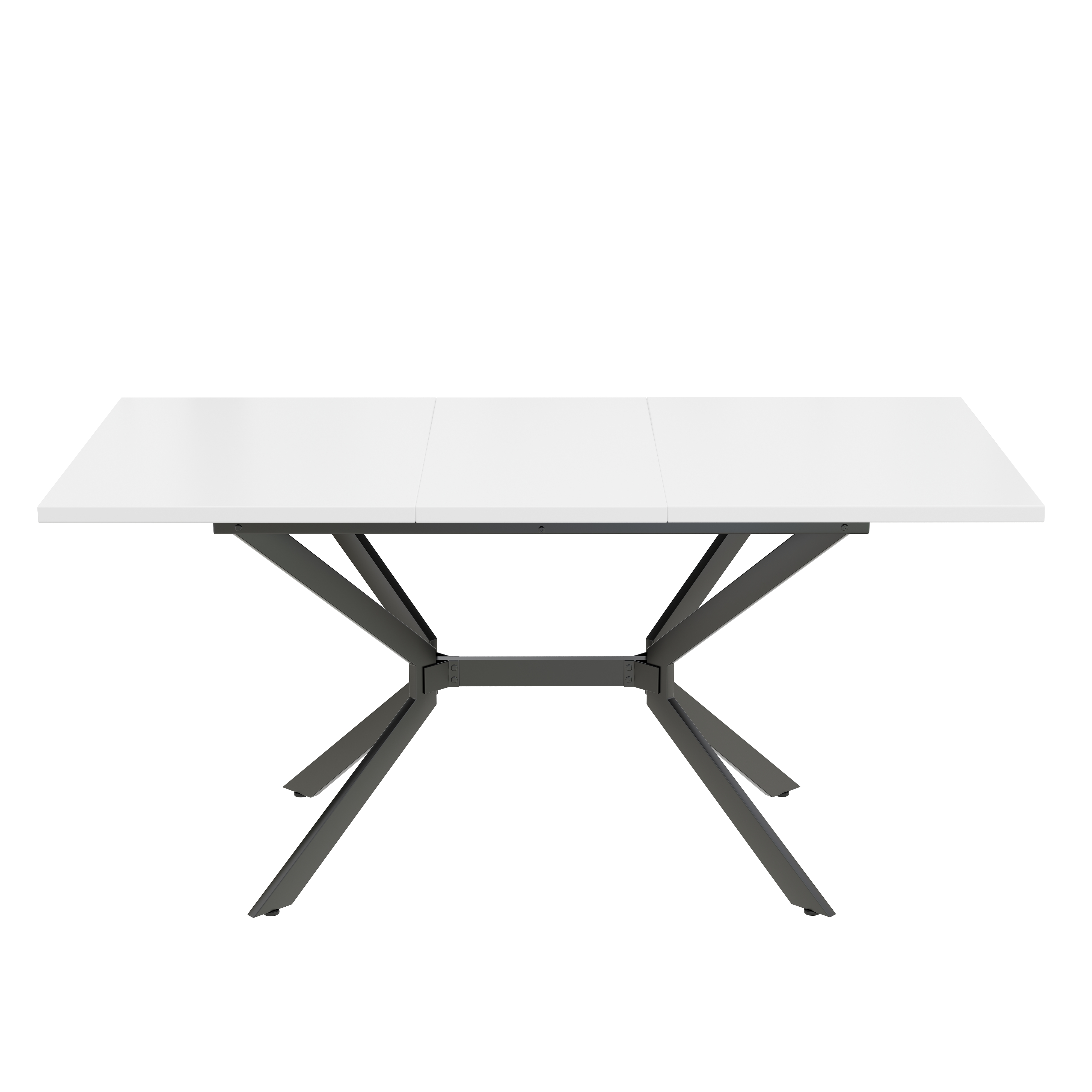 White Extendable Dining Table 120 to 160 x 80cm - Modern Kitchen Table with Black Metal Legs for 4-6 People, Minimalist Design, Easy Assembly