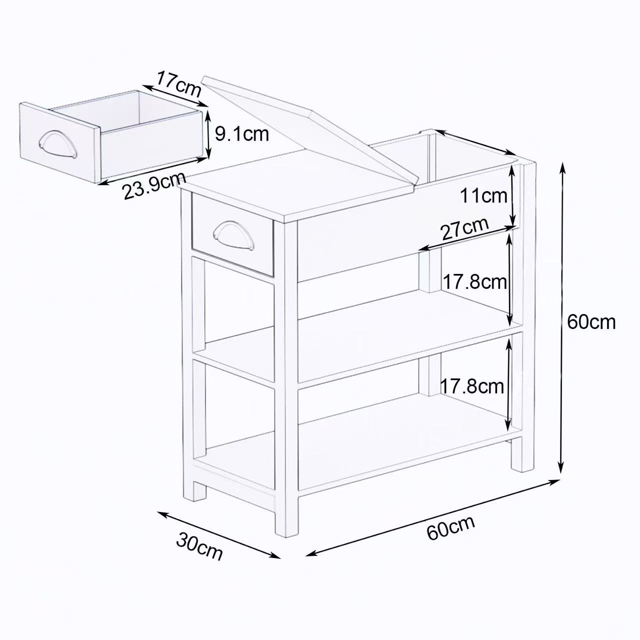 Narrow End Table with Flip-Front Drawer and Bottom Shelf - White, Modern Side Table for Living Room, Bedroom