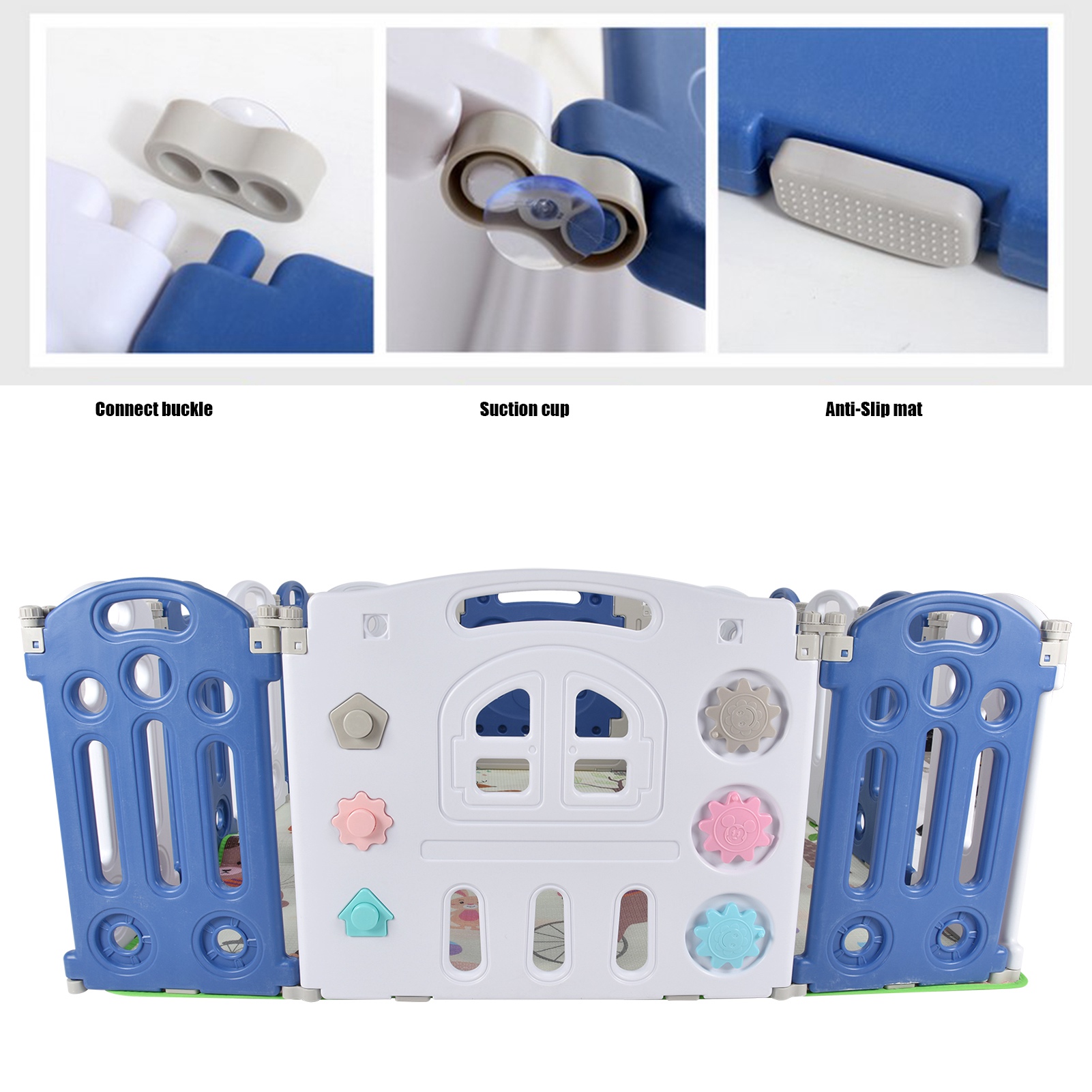 → Anti-Slip Base: Equipped with 16 anti-slip pads and 14 strong suction cups to keep the playpen firmly in place on the floor.