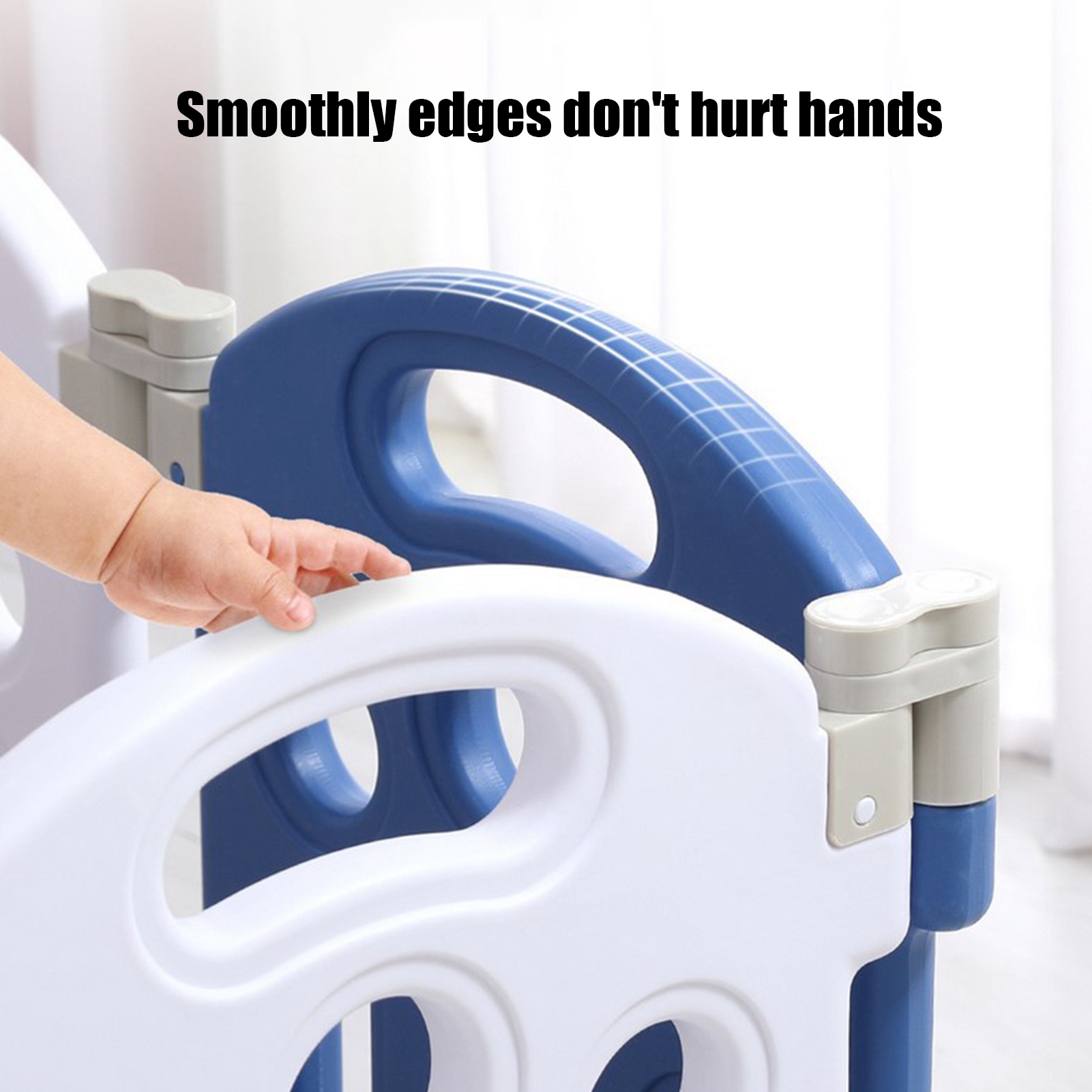 This multifunctional baby playpen is designed for children aged 0-6, creating a dedicated and secure space for exploration and play. Made from high-quality, non-toxic PE material, it's safe even if your baby chews on it. The safe height effectively prevents climbing, while the foldable design and secure locking system ensure easy storage and absolute safety during use. Whether used as a crawling area, play zone, or temporary safe spot, it's an essential helper for modern parenting.