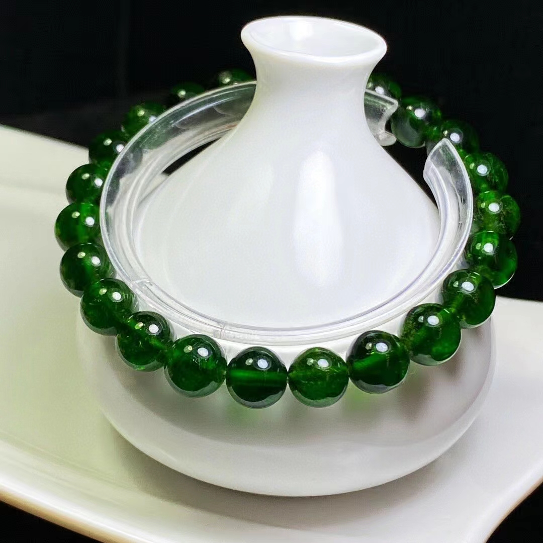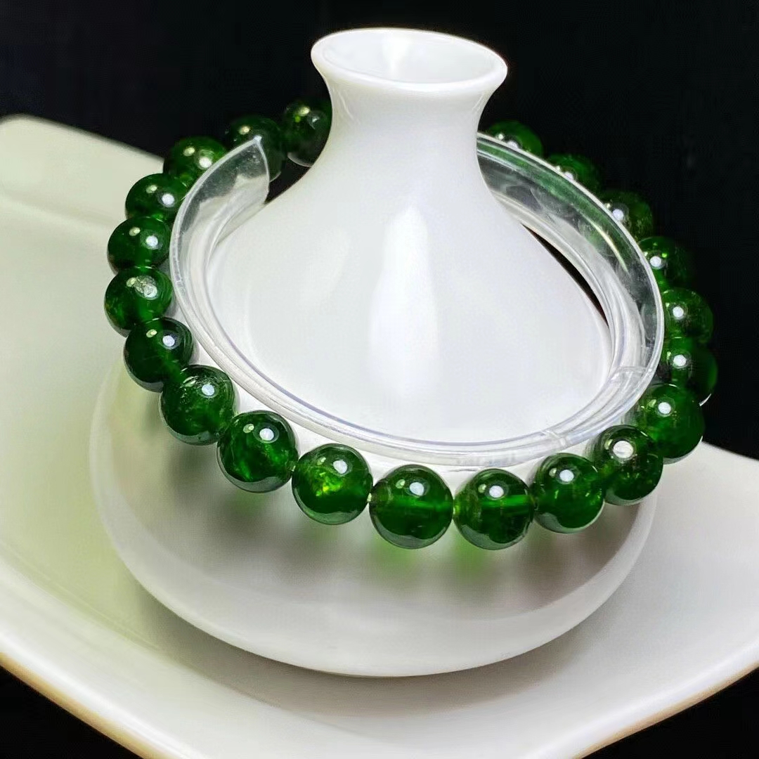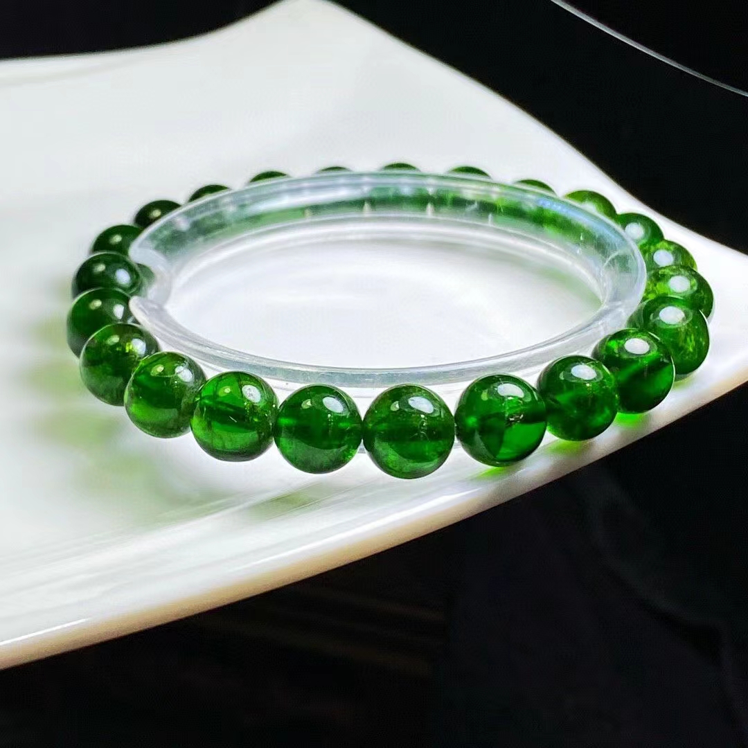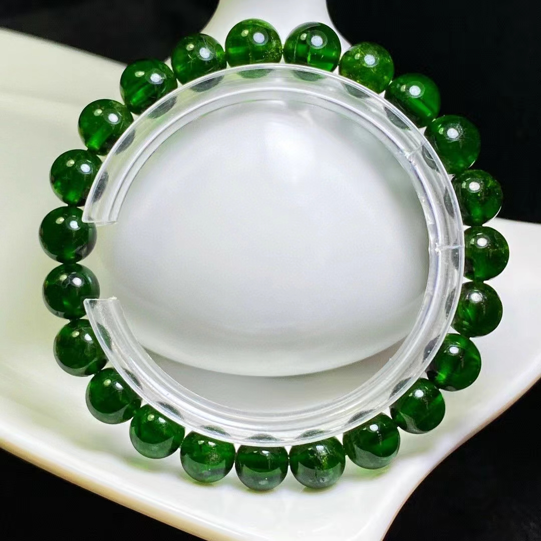 Green Diopside Bead Bracelet 8.5mm Natural Stone, AAAAA Grade Crystal with Vitreous Luster, Unisex Healing Jewelry for Women & Men, Gift Idea