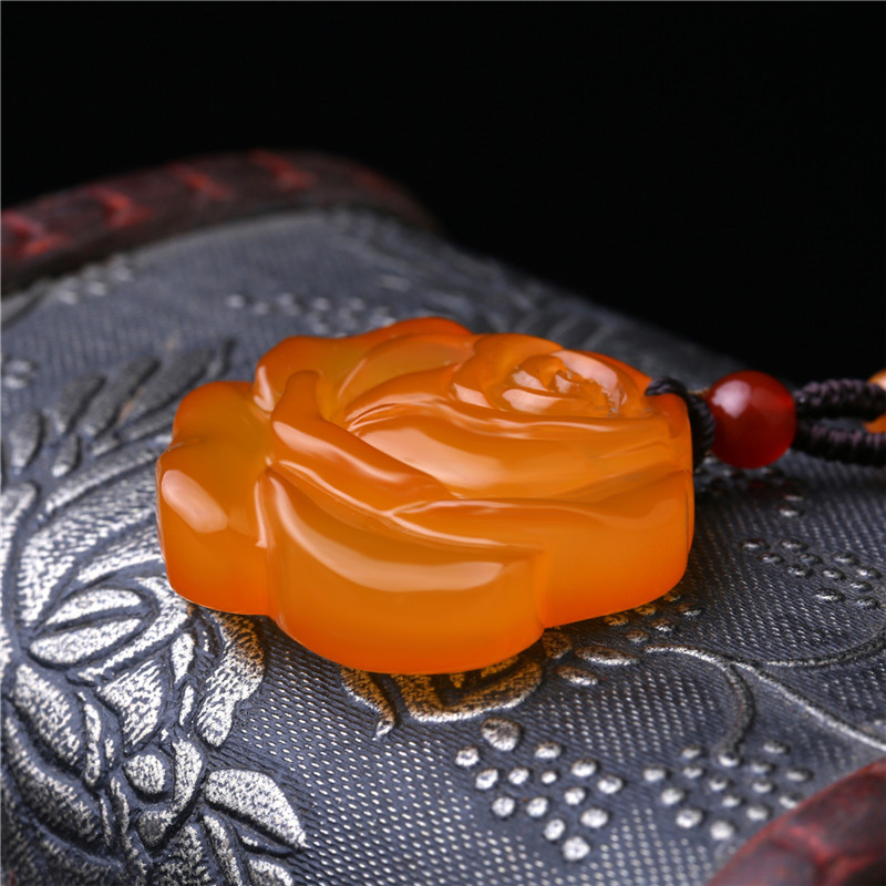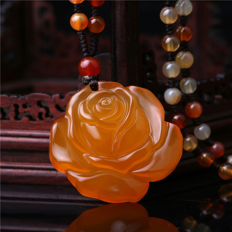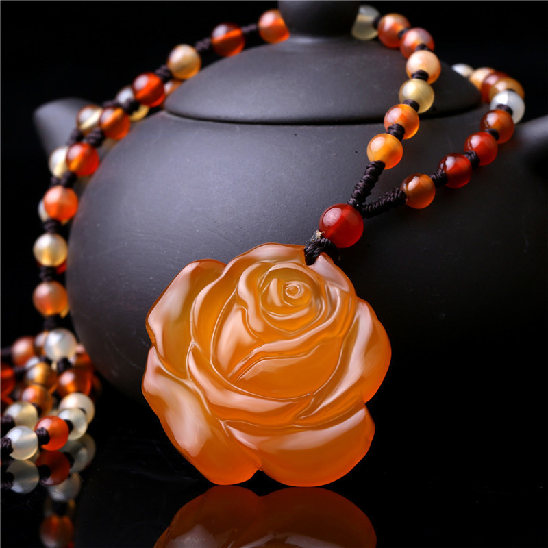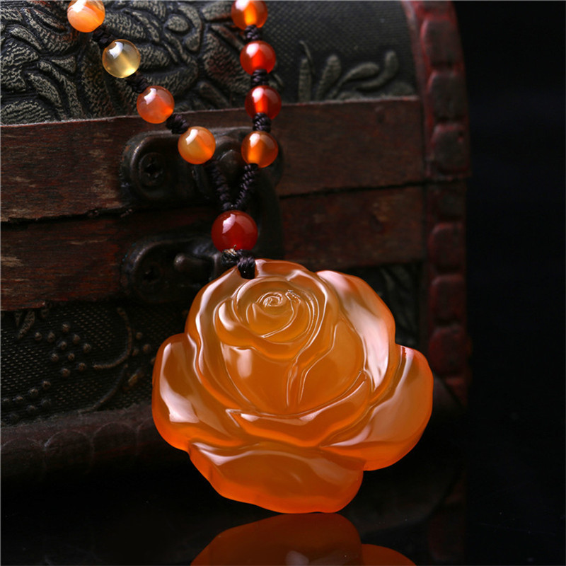 Pink Agate Rose Flower Pendant Necklace, 3.6cm Natural Chalcedony Blossom Lariat, Elegant Women's Gift with Jewelry Box