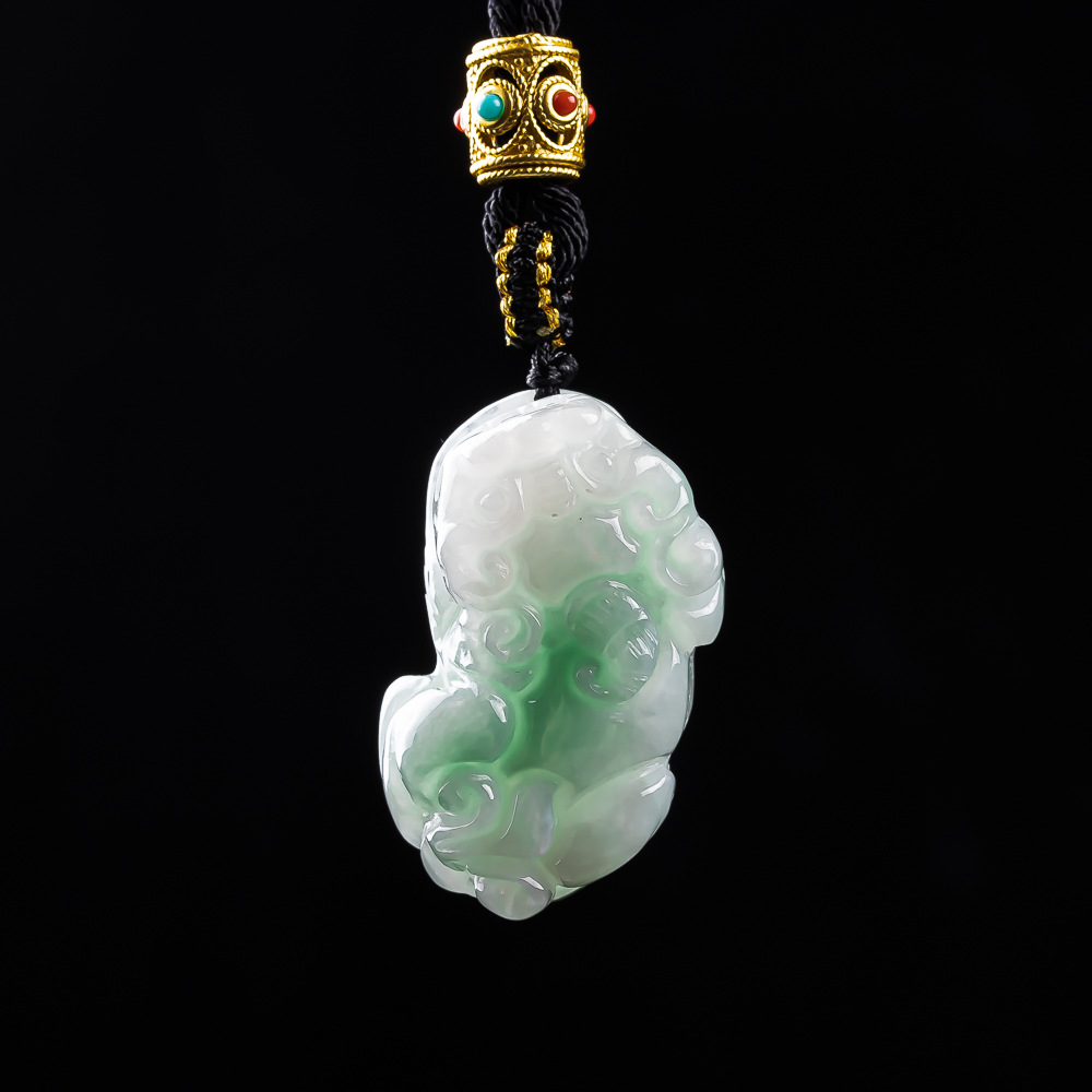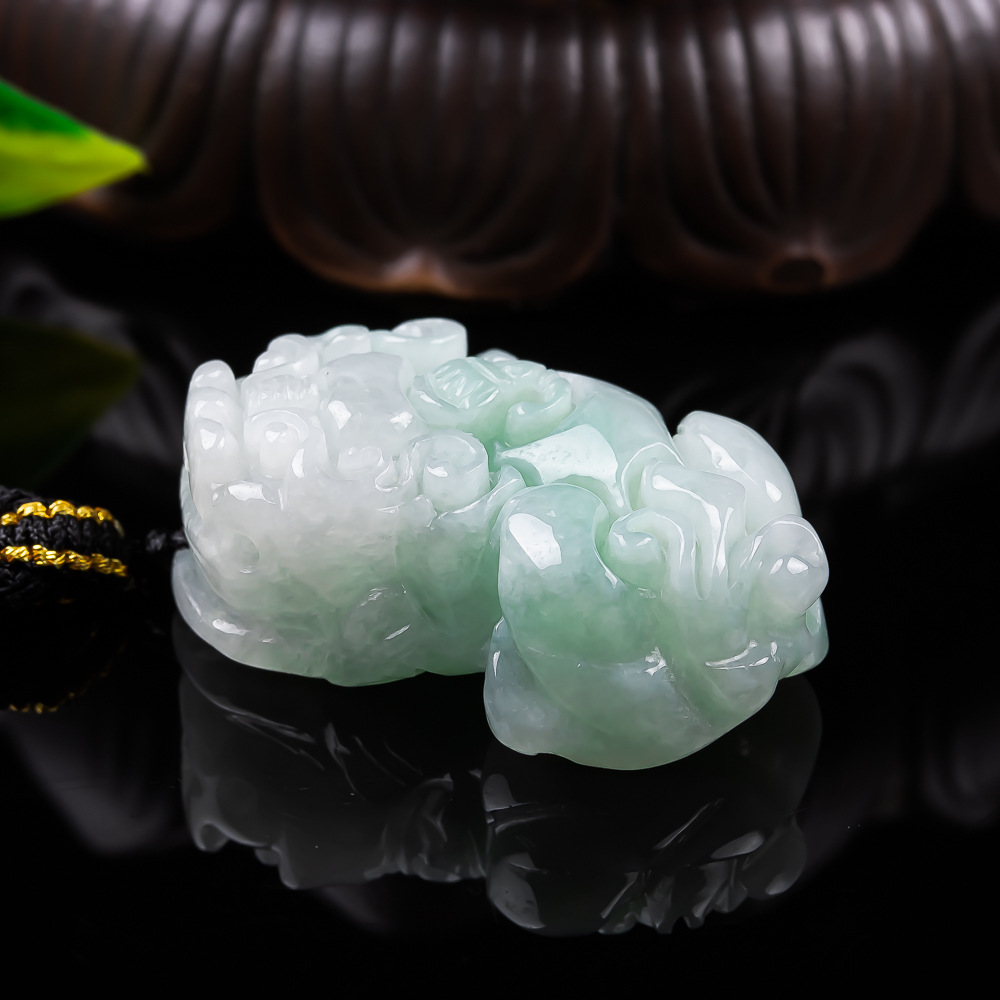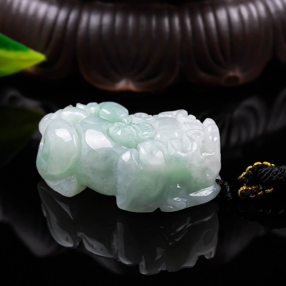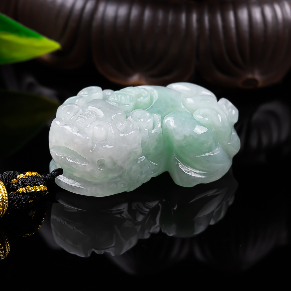 Natural Jadeite Pi Yao Pendant, White Green Jade Carving, Handcrafted Wealth & Protection Amulet, Unisex Jewelry Gift for Women & Men