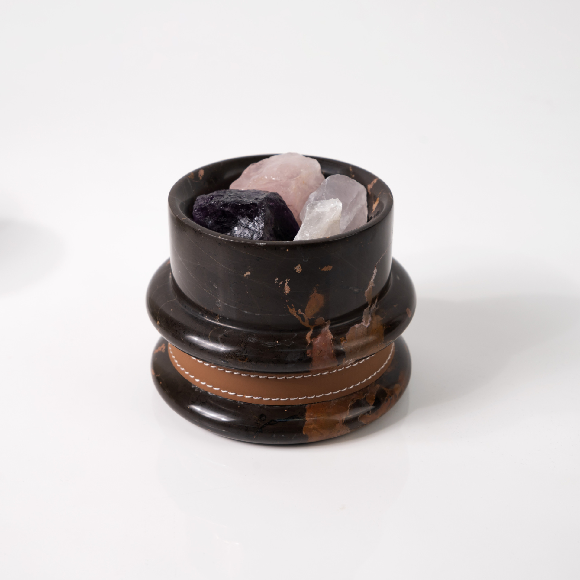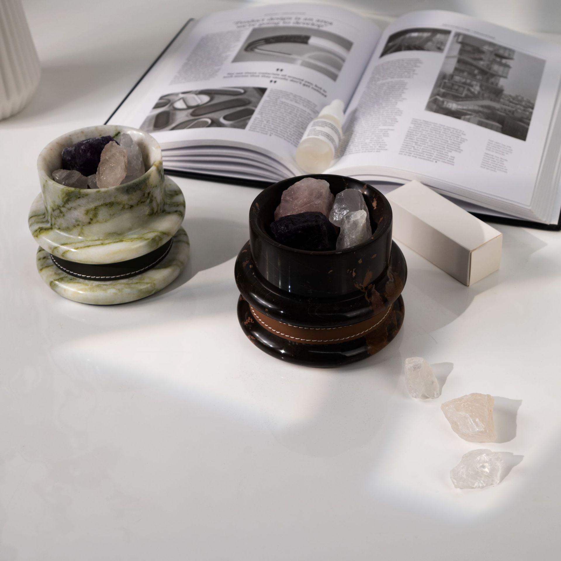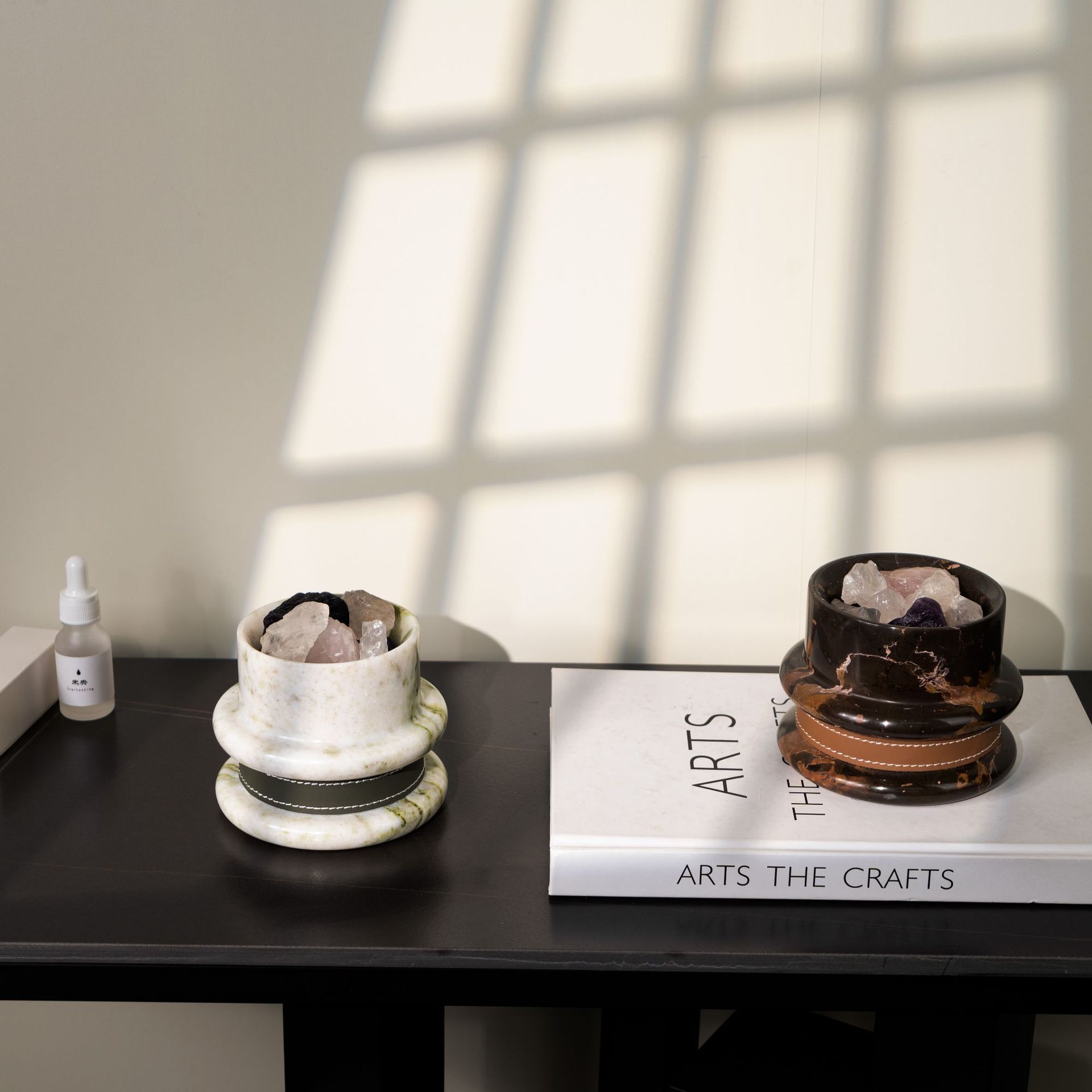Marble Aroma Diffuser with Leather Trim, Emerald Green/Black Gold Marble, Essential Oil Scent Stone, Modern Home Decor for Living Room, Luxury Gift