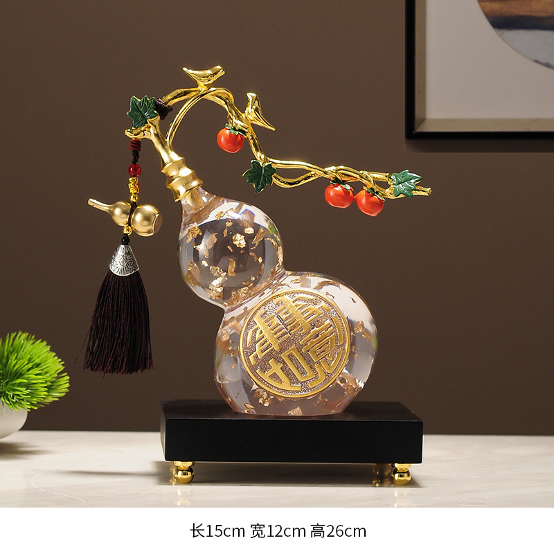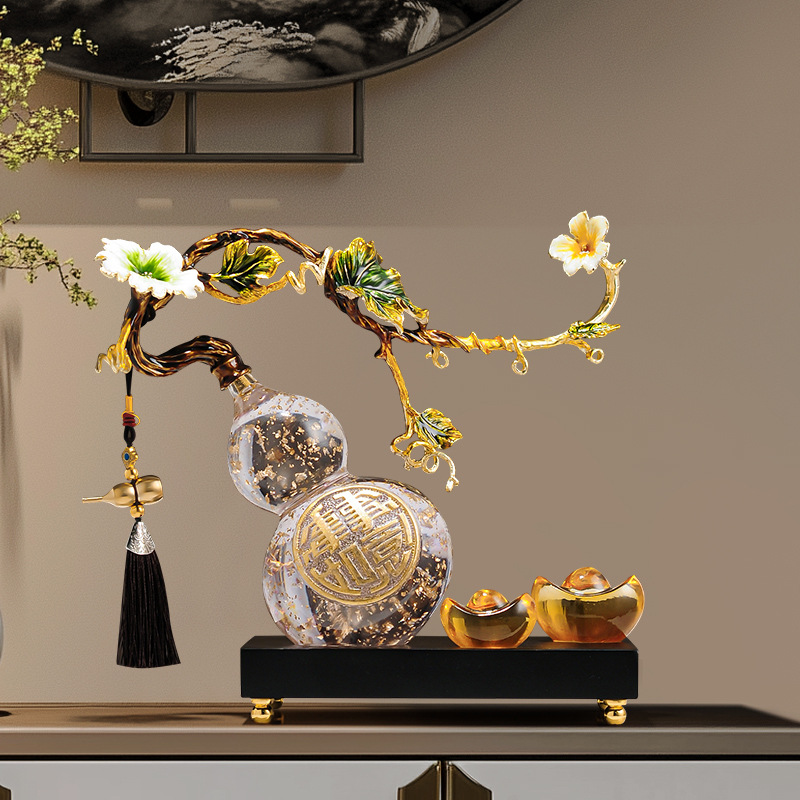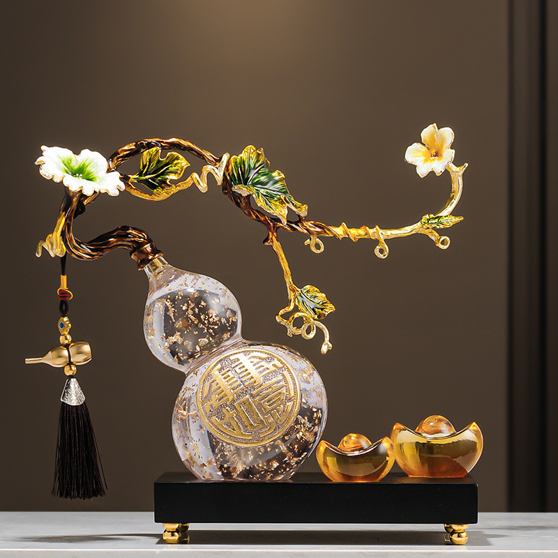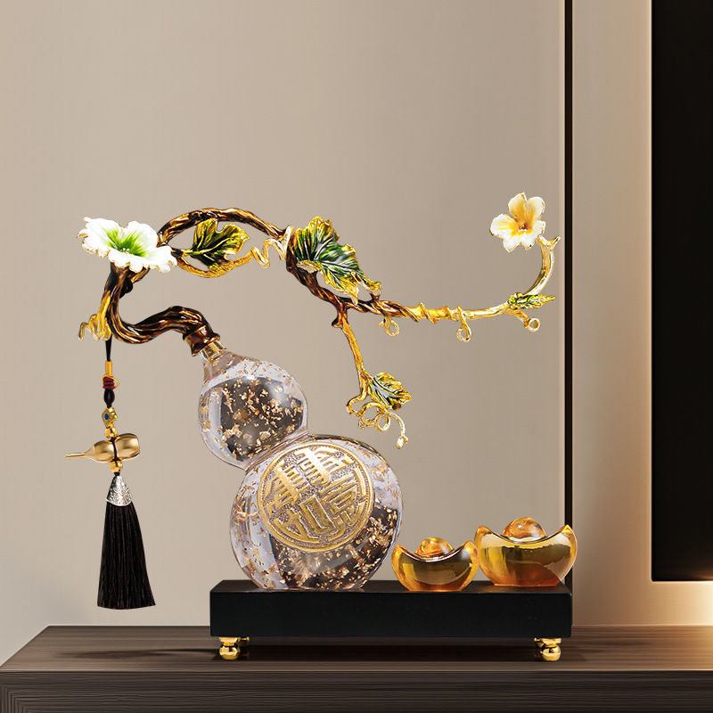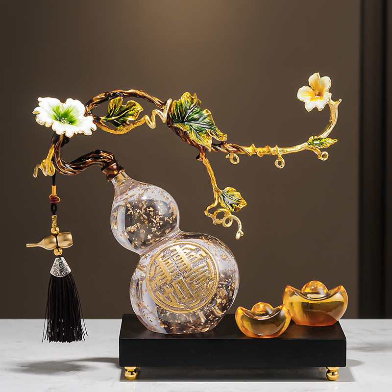 Enamel & Gold Leaf Gourd Ornament, Lucky Wealth Home Decor for Living Room, Elegant Housewarming & Grand Opening Gift, Feng Shui Decor