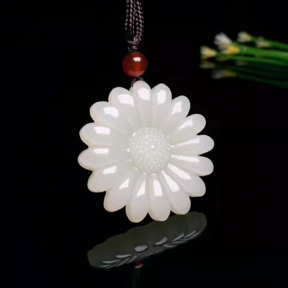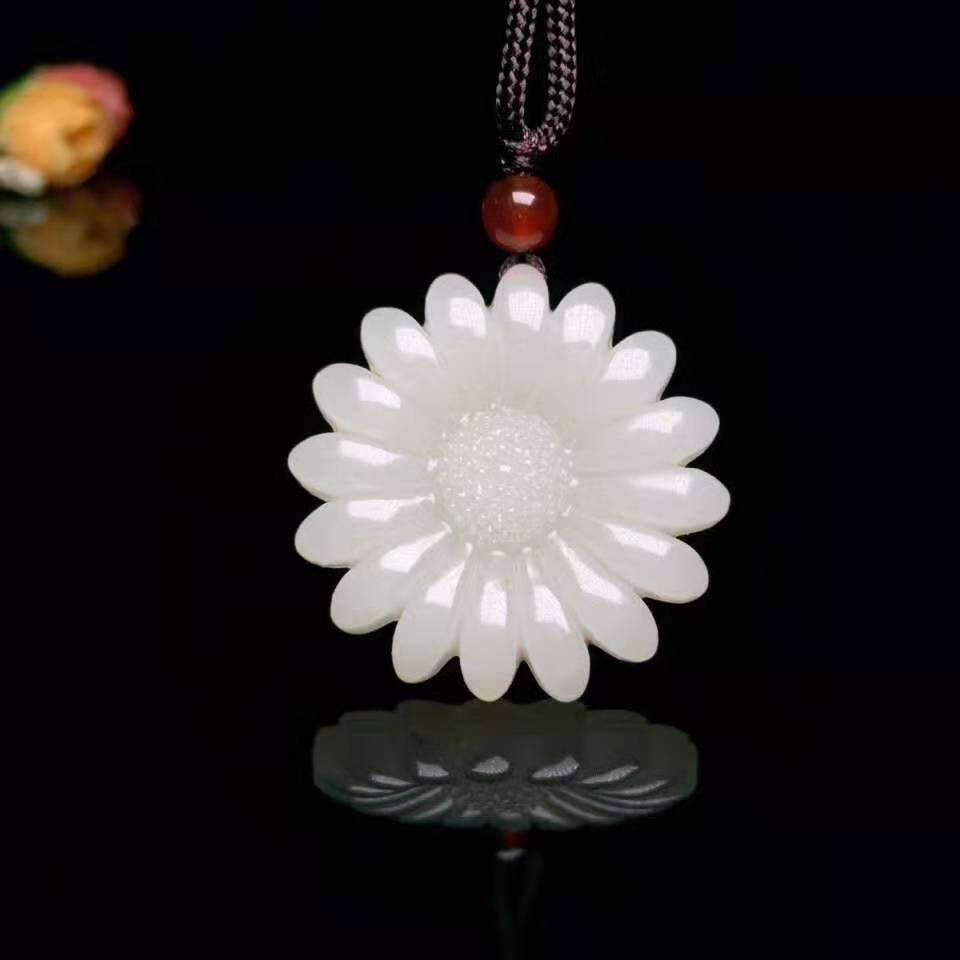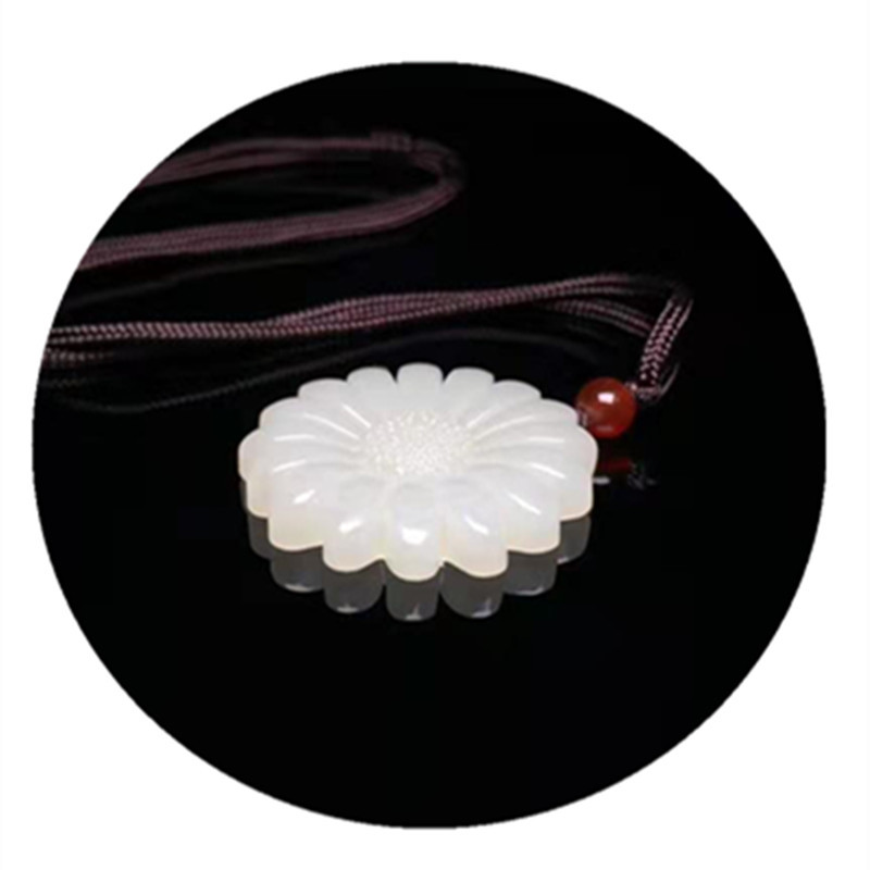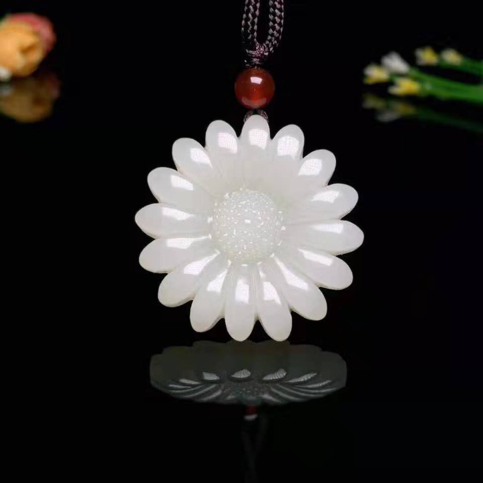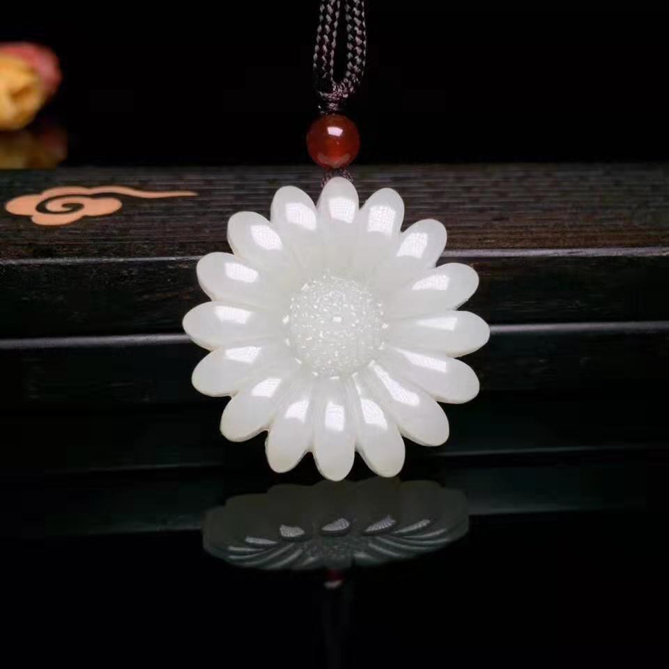 Hetian Jade White Jade Sunflower Pendant, Modern Minimalist Sun Charm, Clean Clarity, 34x5mm