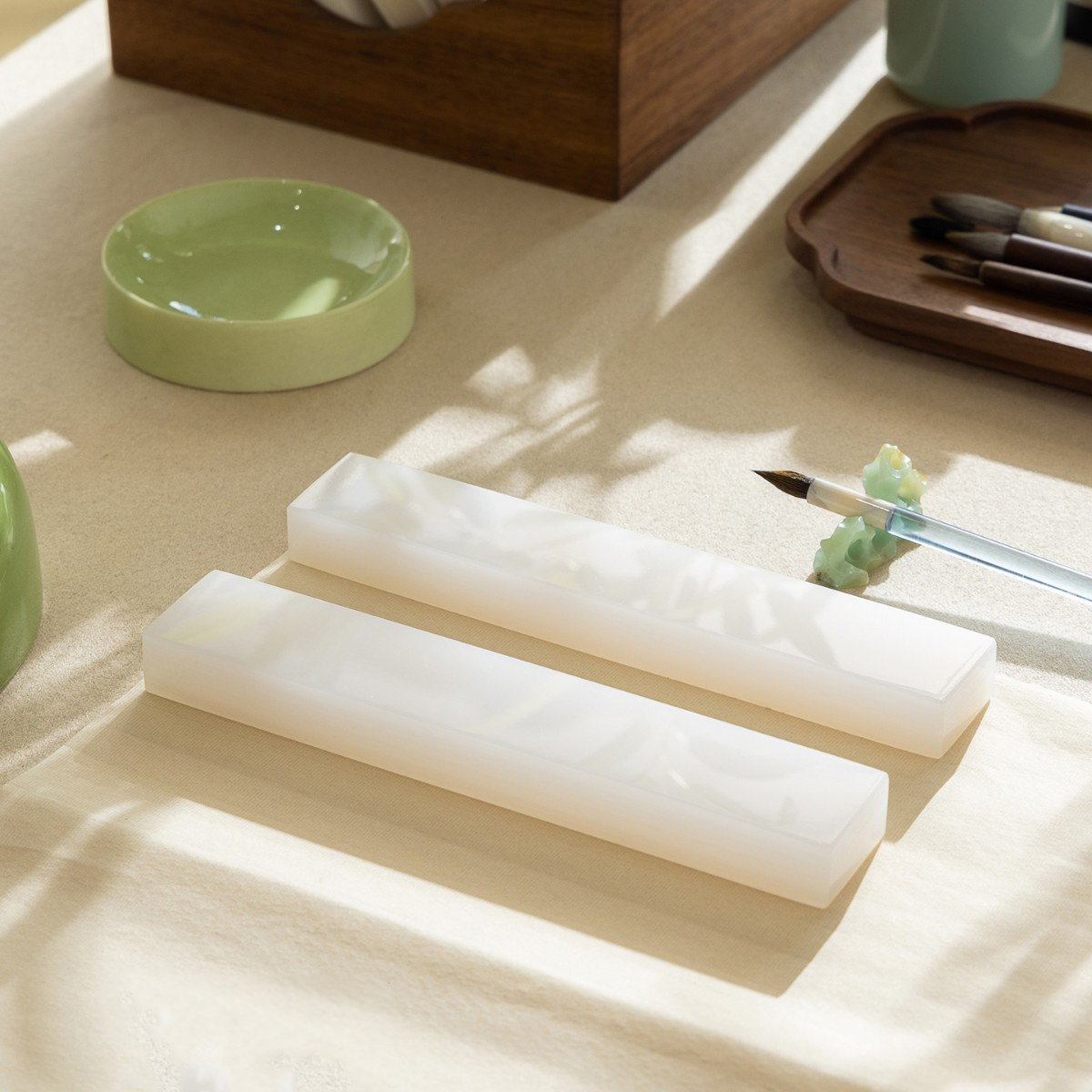 Natural White Jade Paperweight 20.1x3.6x2cm, Calligraphy Desk Accessory for Scrolls, Asian Study Decor, Writing Tool & Art Collectors Gift