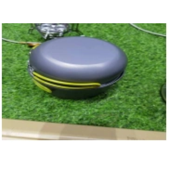 4-Piece Outdoor Cookware Set with Storage Case (Gray/Yellow) - Includes Frying Pan, Cooking Pots & Organizer Box for Camping - Compact Protective Storage, Saves Space - For Efficient Outdoor Cooking - 4 Pots + 1 Case