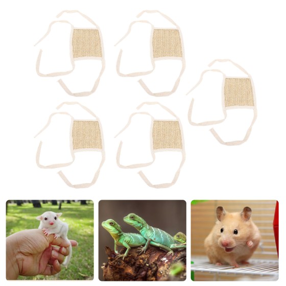 5 Pack Natural Seagrass Hammock & Sleeping Pad for Sugar Glider, Lizard, Hamster - 2 Sizes Hanging Bed Swing (Small 14x11.5cm, Large 16.5x14.5cm) with Ties for Cage