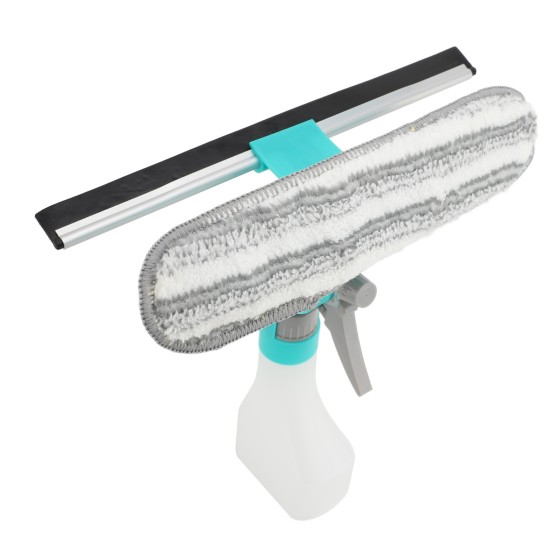 4-in-1 Window Cleaning Tool with Sprayer, Squeegee, Scrubber & Towel - Streak-Free Professional Glass Cleaner for Home, Car Windows, Shower Glass - No Cleaner Needed - Leak Proof Bottle