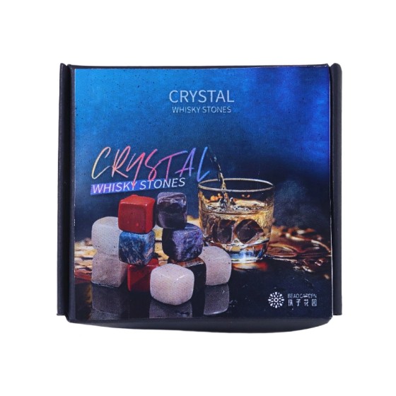 🔮【Whisky Stones】Gemstone Chilling Cubes Amethyst/Green Agate/Rainbow | 17mm Mineral | Velvet Pouch | Non-Diluting Home Bar Essential