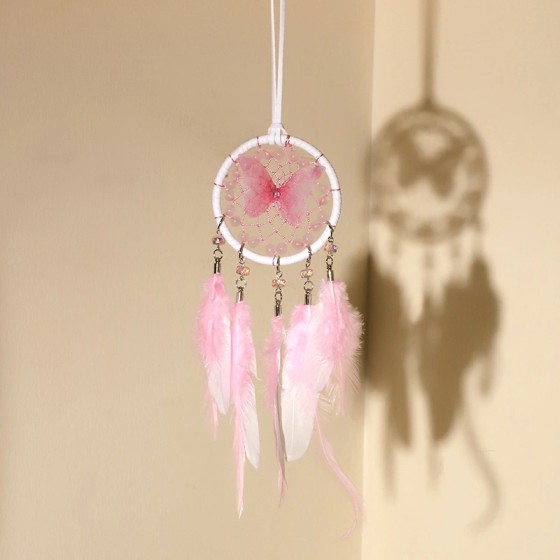 🦋【Dreamcatcher】Native American Inspired Handwoven Catcher Cream/Yellow & Pink/White | 7cm Hoop with Butterfly Charms | Nightmare Filter + Sleep Aid | Boheme Window Sill Decor for German Homes