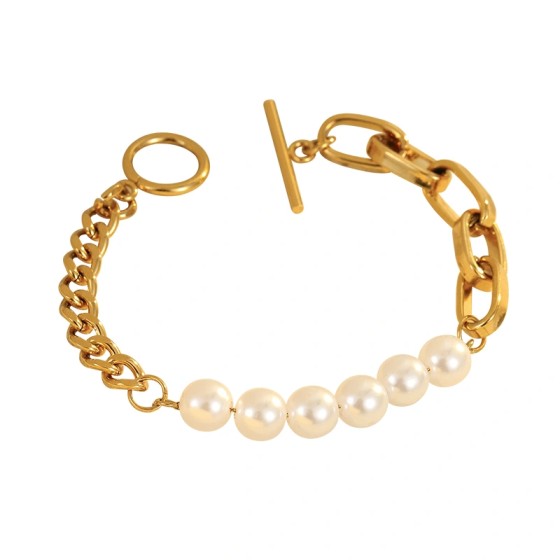 19cm Pearl Bracelet | Gold Chain and Pearl Design | 7.3mm Cultured Pearls | T-shaped Clasp | 16.5g Lightweight for Commuting | Simple Packaging ONB2505082 runshi