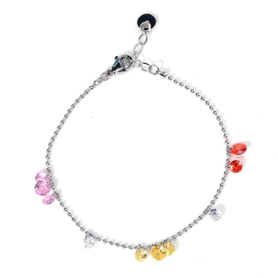 Silver bead necklace | 16+3cm extension chain | Multi-colored crystal embellishment | German office and banquet style | Single piece ONB2505083 runshi