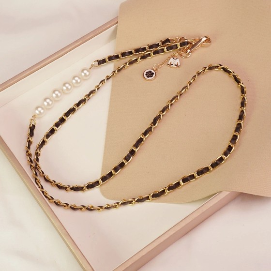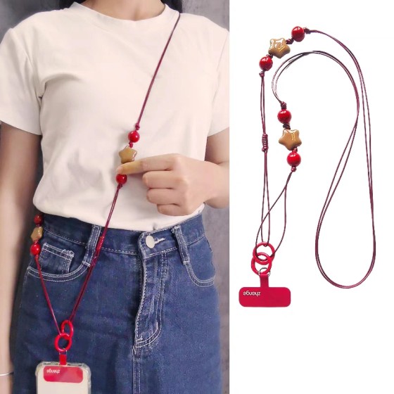 Beige mobile phone strap chain 120cm | German everyday style | 44g ultra-light bead chain + gold spacer | Metal buckle to prevent loss while cycling | Individually packaged ONB2505099 runshi