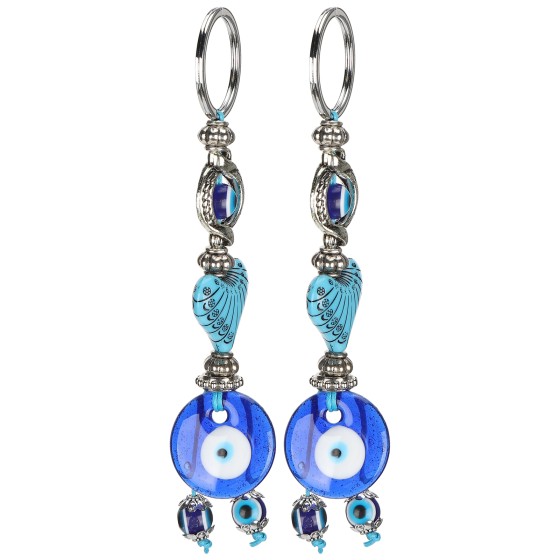 Turkish Evil Eye Keychain, Nazar Boncugu Protection Charm 2-Pack, Blue Glass Alloy Key Ring for Purse Bag, Good Luck Gift for Home Car, Ward Off Negative Energy