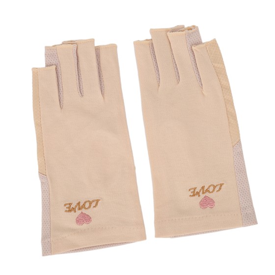 UV Protection Fingerless Manicure Gloves, Breathable Stretchy Fiber Cotton Gloves for Nail Lamp Light, Wrist Guard Design, Beige Color (One Size)