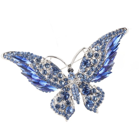 Vintage Rhinestone Butterfly Brooch, Blue Crystal Alloy Lapel Pin for Women Men, Elegant Floral Corsage for Jacket Blazer Wedding Party Gift (1PC, 8.9x5.9cm)