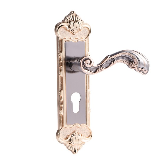 H 欧式复古铝合金室内门锁 - 实木房门机械锁具套装 (3钥匙) 金色 适用厚度3.5-4.5cm (锁体颜色随机) YM JY03569