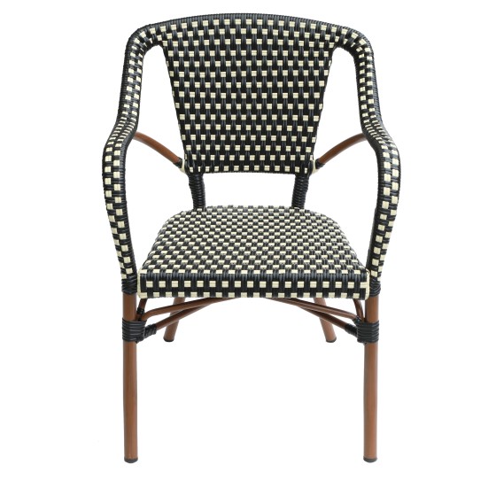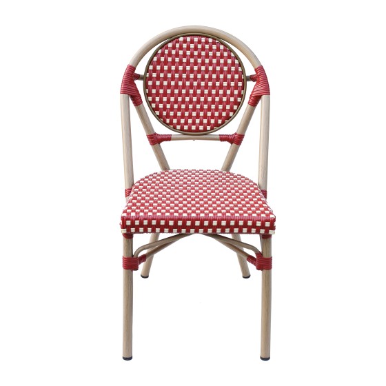 【Pre-Order Samples】Outdoor PE Wicker Chair Aluminum Frame|3 Colors: Black/White Check, Red Plaid, Beige/Brown Check|46×55×89cm Seat H44cm|Folding Bistro Chair UV-Resistant for Patio & Balcony