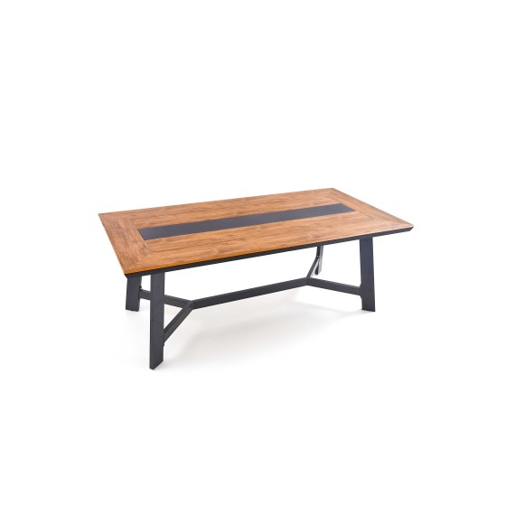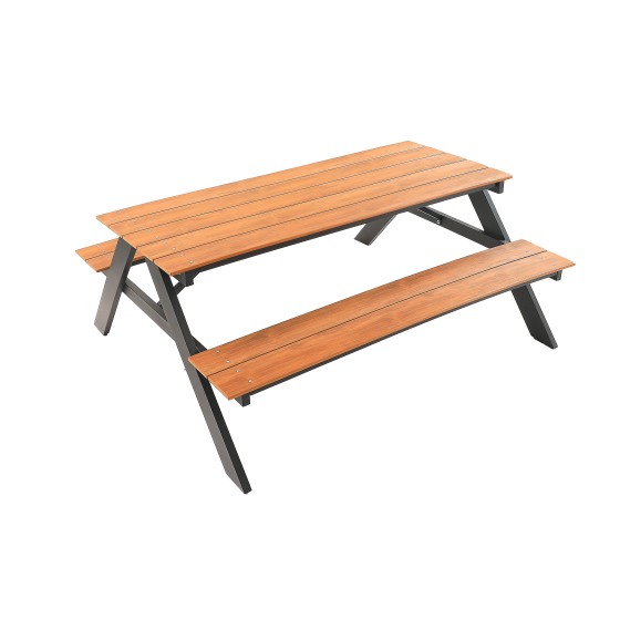 【Pre-Order Samples】Square Outdoor Table Set with Bench 165x149cm, Composite Wood & Metal Patio Furniture (Brown/Black or All Black), Weatherproof & Low Maintenance