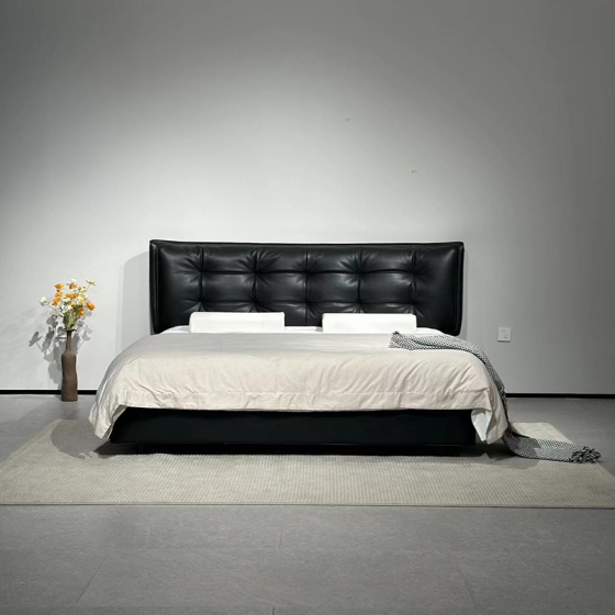 Blüte Bed Frame 207x226 cm - Genuine Top Grain Leather Upholstery, High-Resilience Foam, Solid Wood Frame (Pine/Multilayer) - Bed Frame Only (Fits 22cm Mattress)