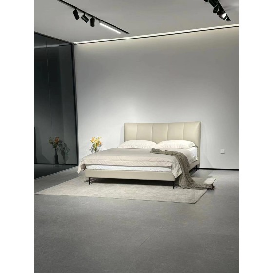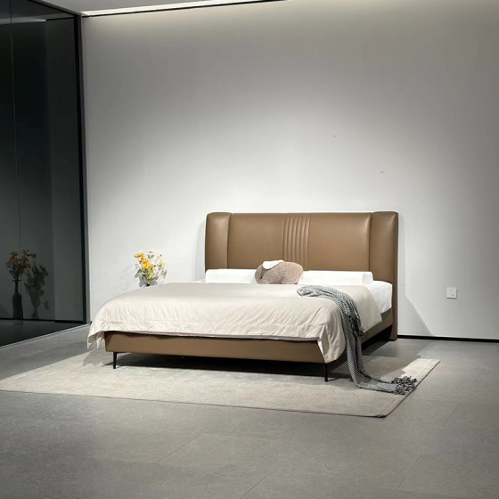 Koko Bed Frame 205x215 cm - Genuine Top Grain Leather Upholstery, High-Resilience Foam, Solid Wood Frame (Pine/Multilayer) - Bed Frame Only (Fits 20cm Mattress)