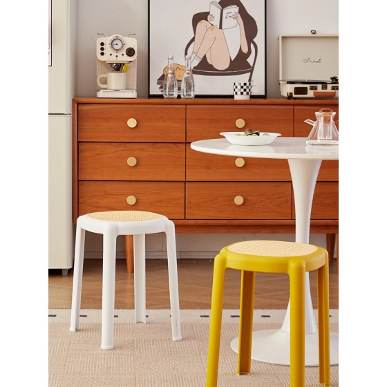 Colorful Hollow Rattan - Top Plastic Stools | Stackable Space - Saving, Multi - Color for Home/Dining/Living Room
