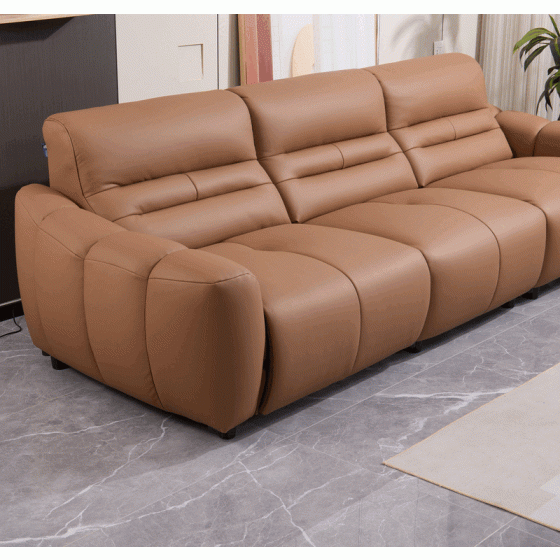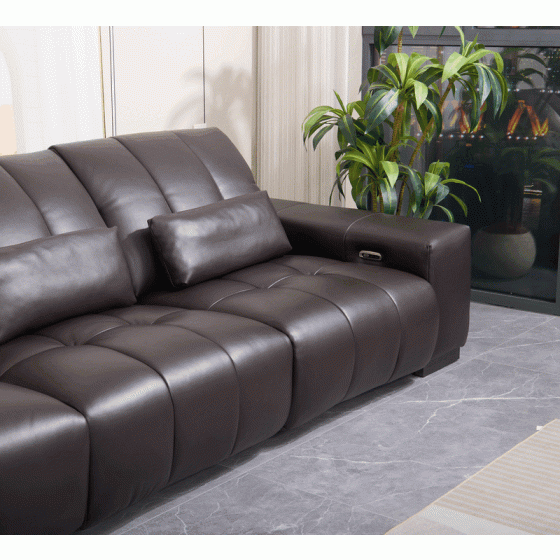 Electric functional sofa in dark brown, three-seater, right-side recliner + three-zone independent backrest adjustment, premium leather durable design naite