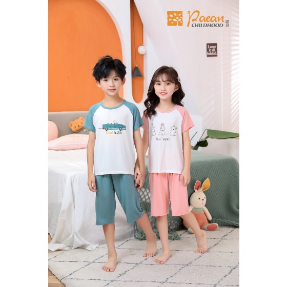 Children's Short-Sleeved Homewear Set Cute Cartoon Print Comfortable and Cool Skin-Friendly Pajamas for Boys and Girls