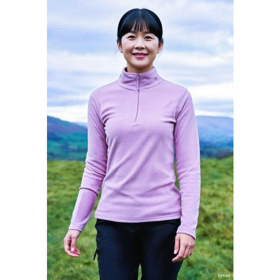 Light purple half-zip high-neck fleece top Women's outdoor leisure warm fleece jacket