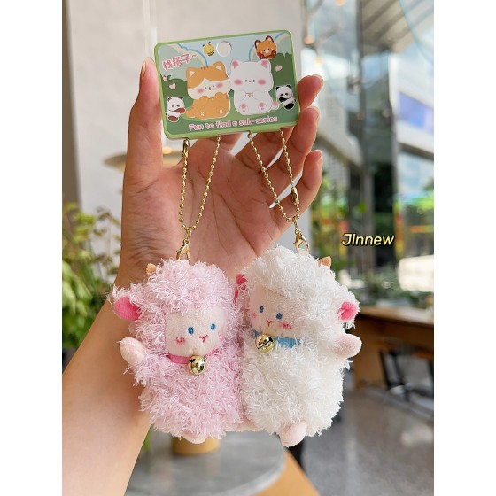 2 Pack "BFF Flock" Magnetic Sheep Charms🐑|Pink+White Bells🔔, Adorbs! Snap Together💖, Gift for Bestie/Couple|4" Cozy Buddy, Gold Chain